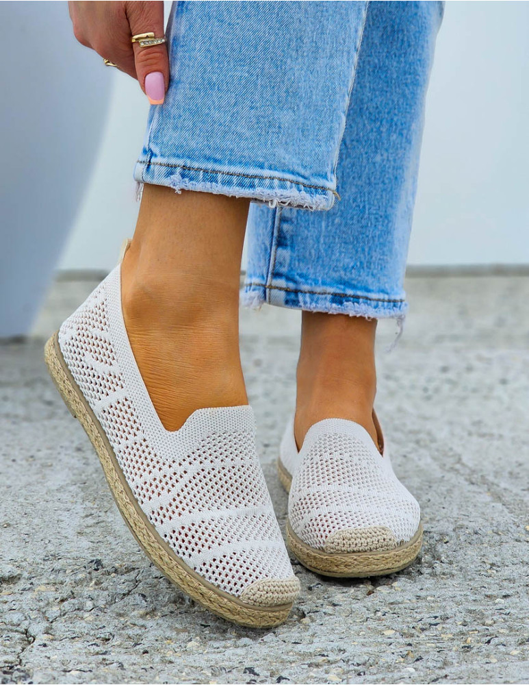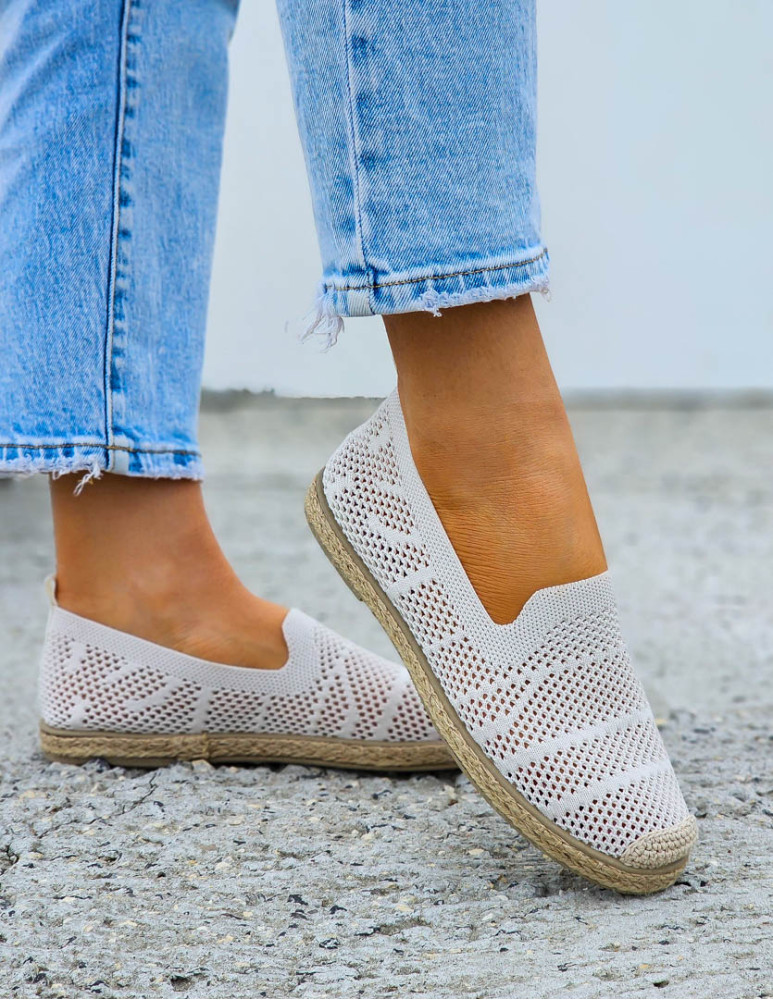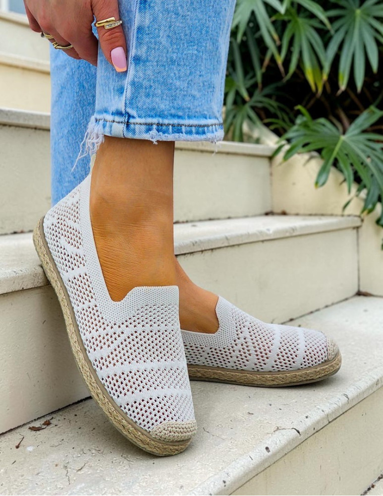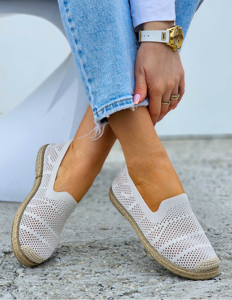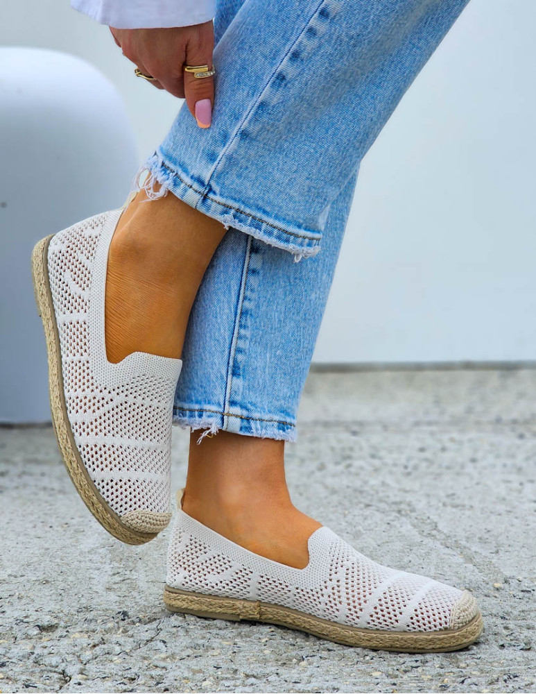 Ażurowe Espadryle Mokasyny Na Plecionej Podeszwie Beige