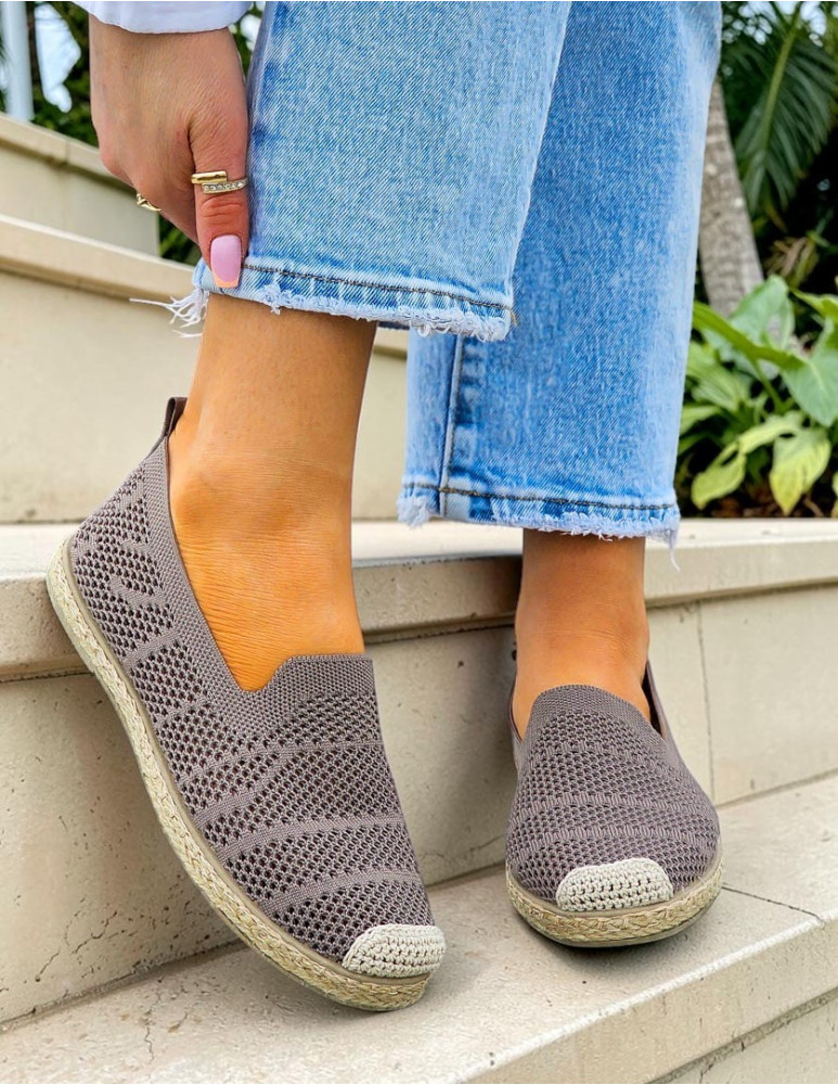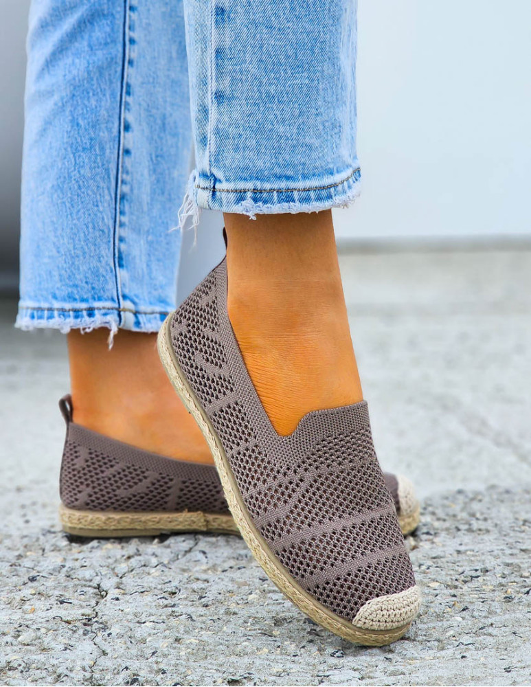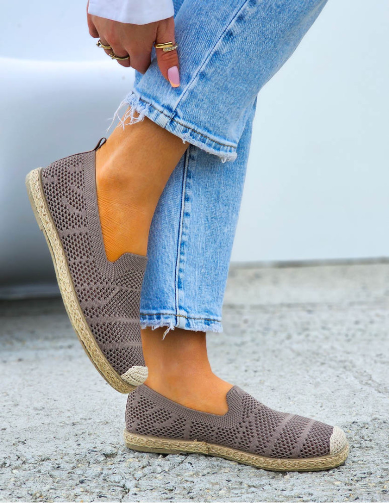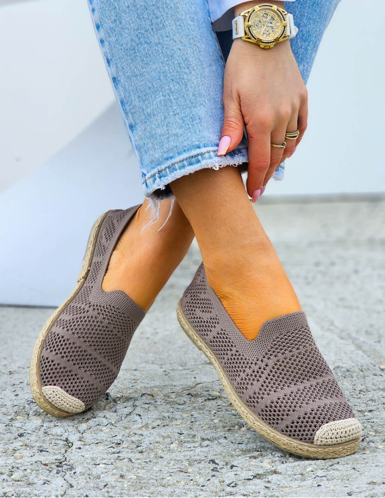 Ażurowe Espadryle Mokasyny Na Plecionej Podeszwie Khaki