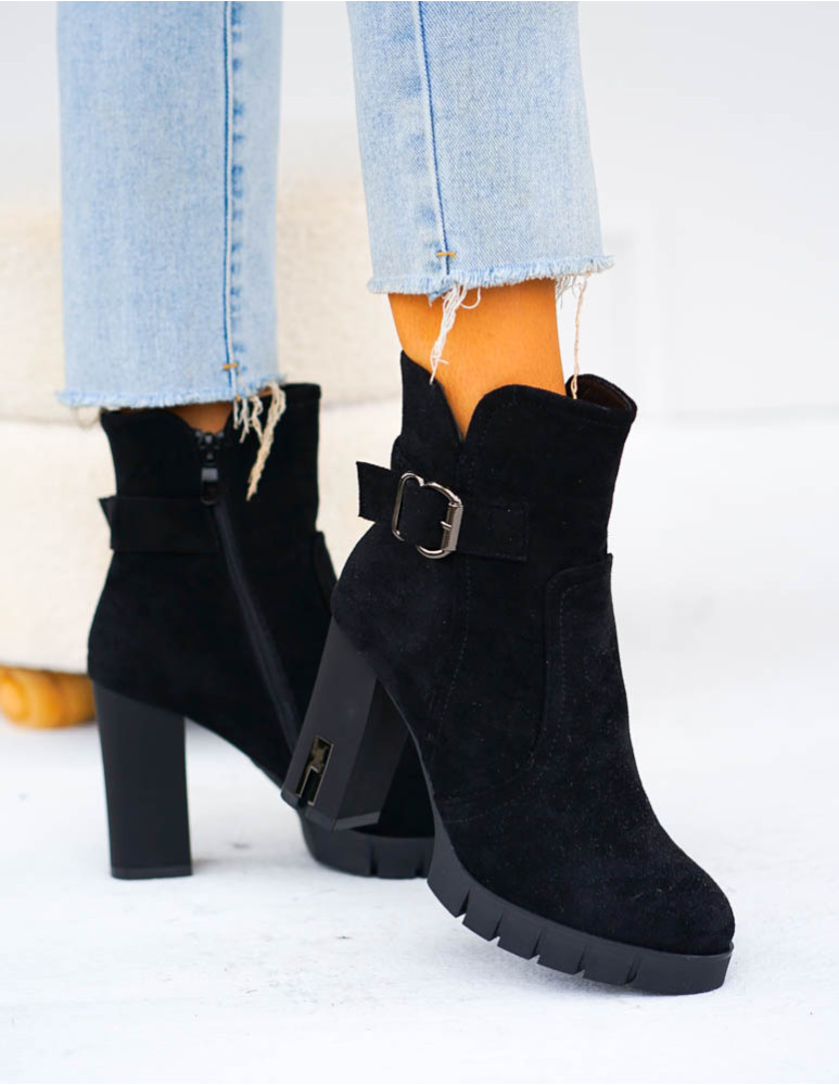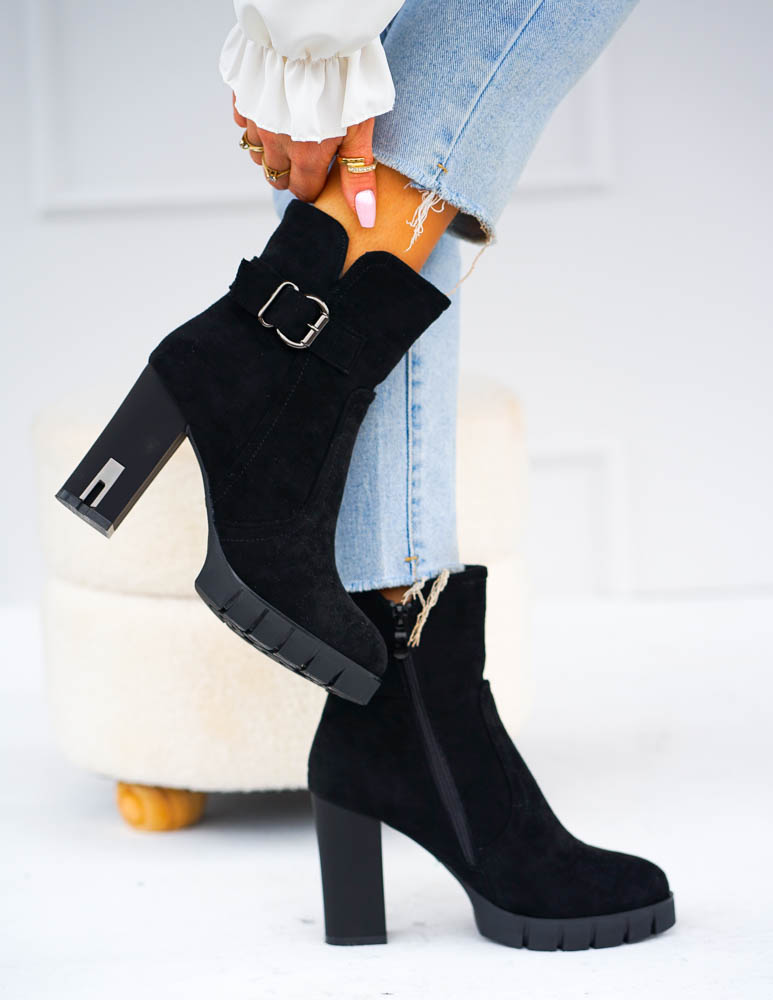 ❤ Modne i tanie buty on-line❤ Eleganckie zamszowe botki damskie❤ Czarne botki na obcasie❤ Ociep..