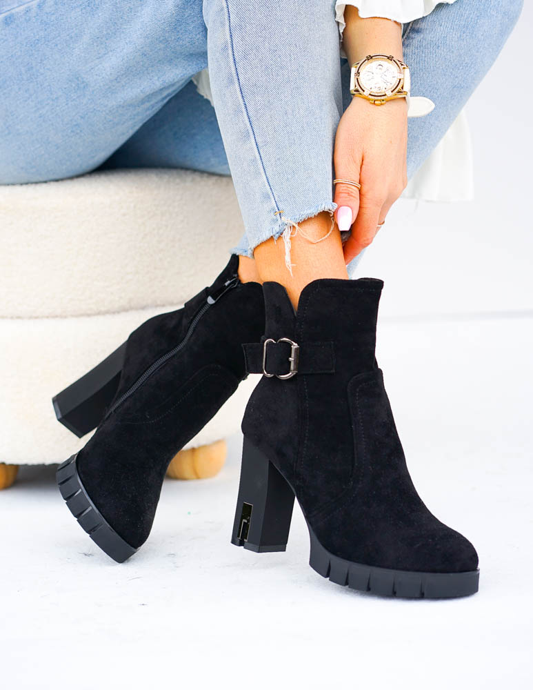 Czarne Klasyczne Zamszowe Botki Na Obcasie Fenny