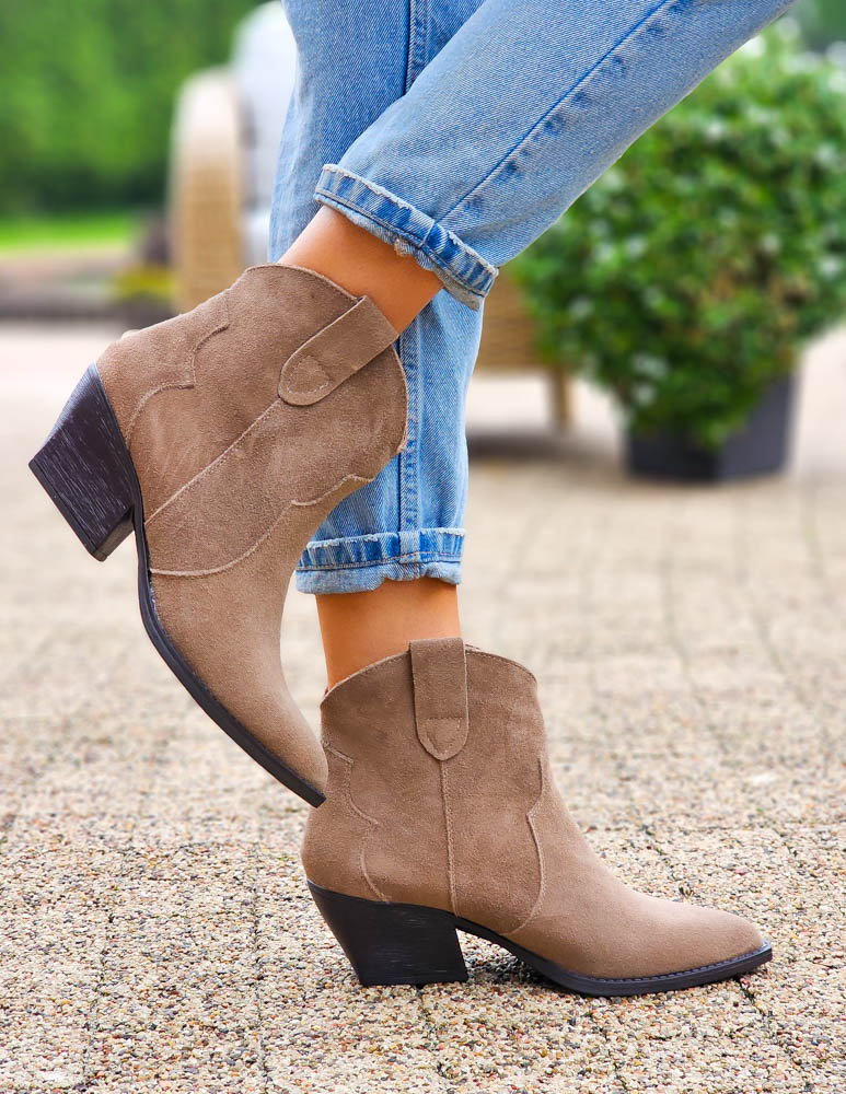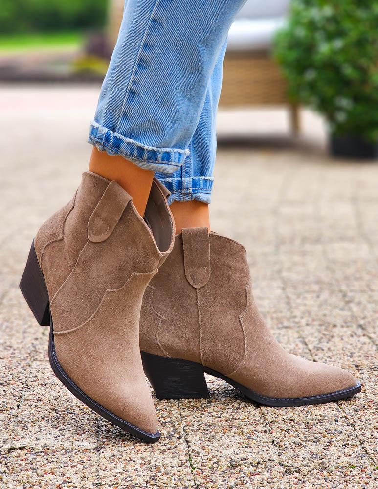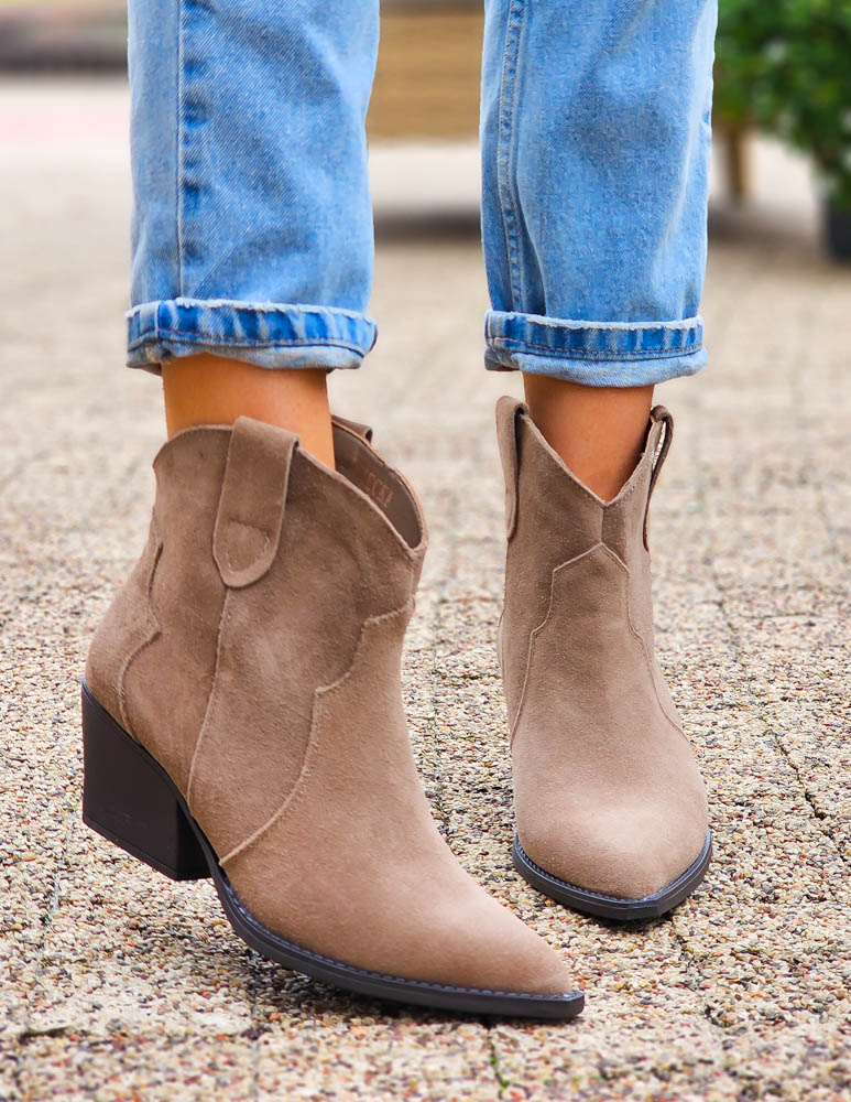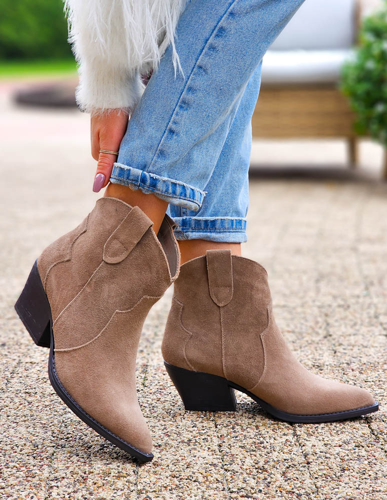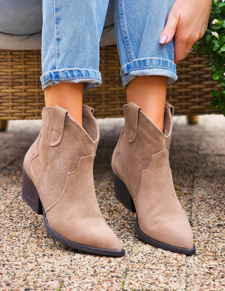 Beżowe Zamszowe Botki Kowbojki Damskie Loren