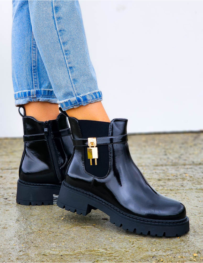 Klasyczne Botki Lakierowane Workery Mirror