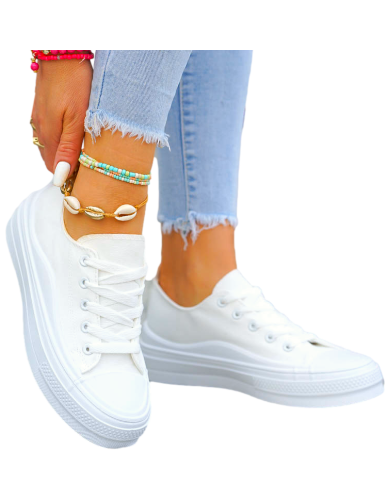 ❤Wysyłka 24 h❤Białe, klasyczne trampki na grubej podeszwie❤Białe buty sportoweŚliczne, damskie sznur..