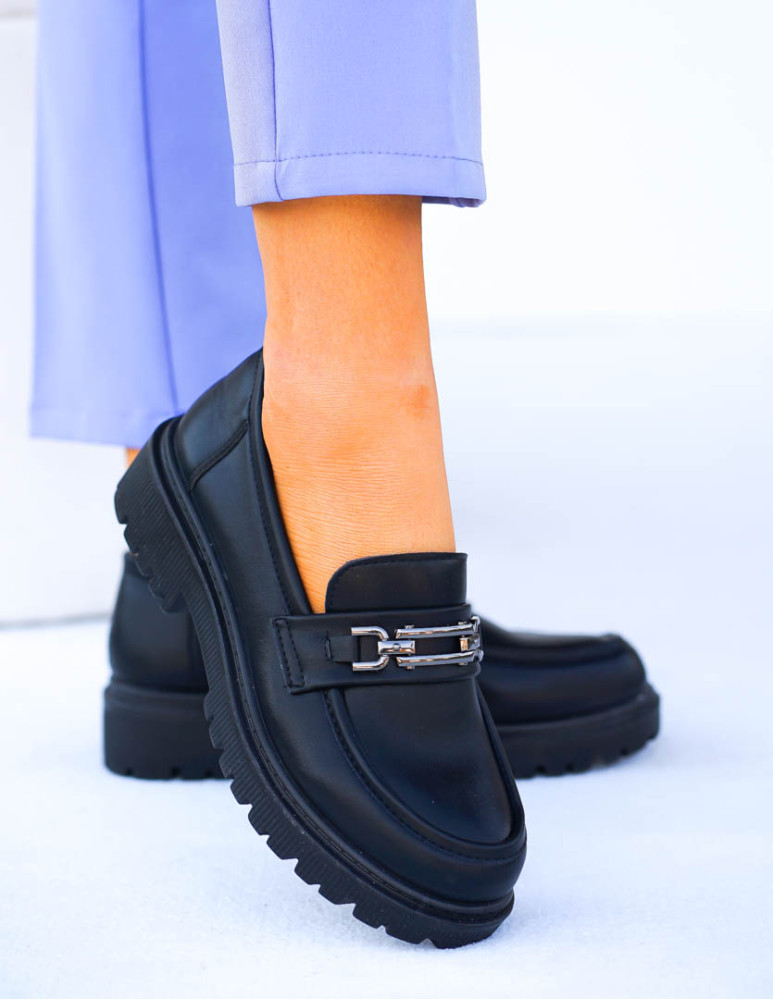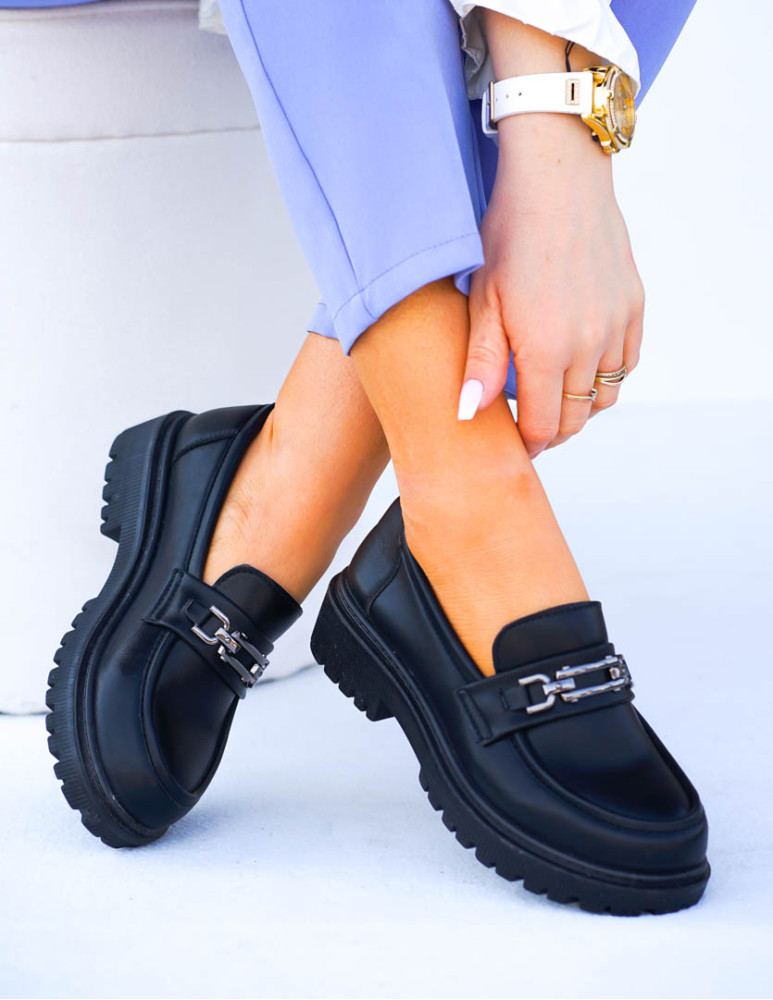 Czarne Modne Półbuty Mokasyny Na Klocku Blacked