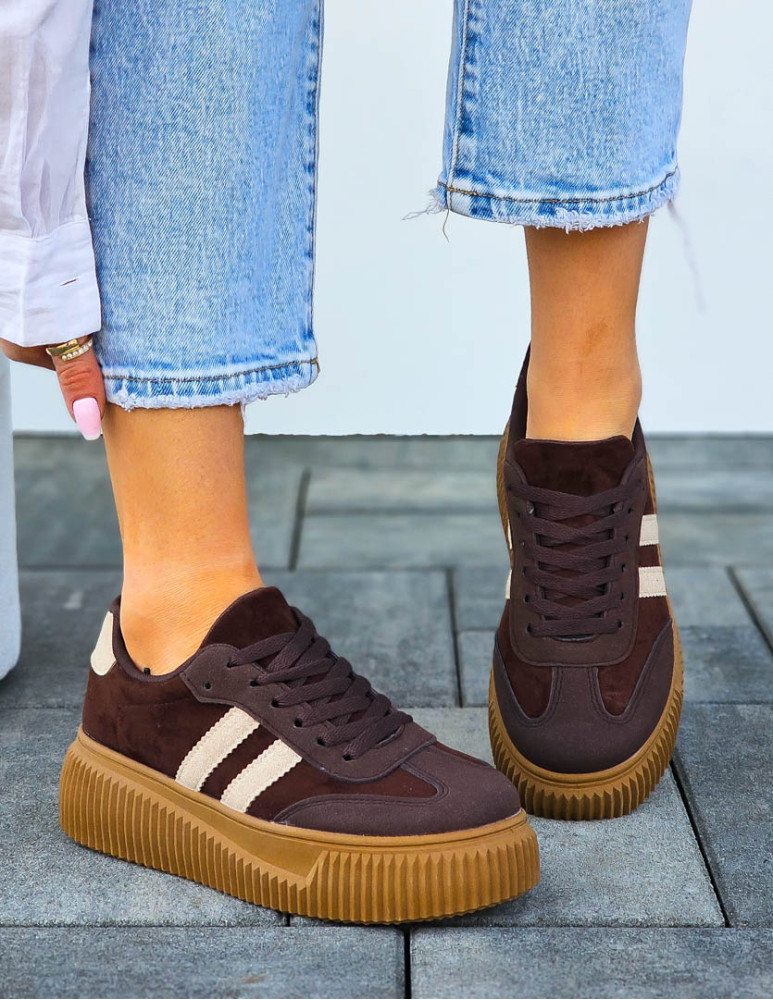 Czekoladowe Buty Sportowe Na Grubej Podeszwie Caroline