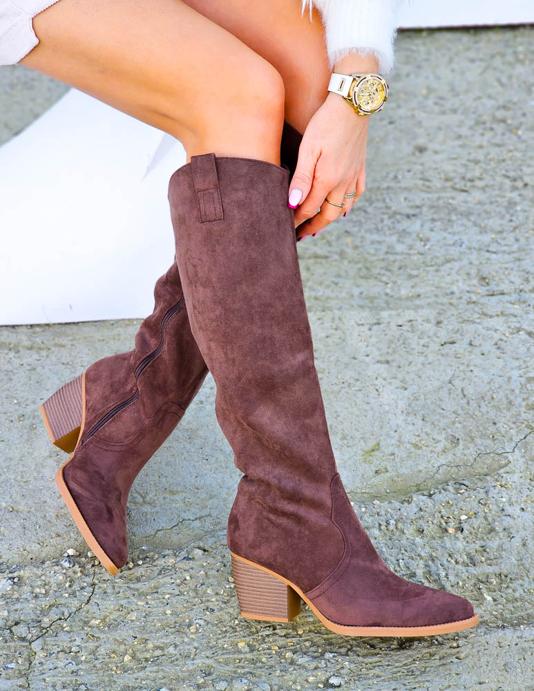 Czekoladowe Zamszowe Kozaki Kowbojki CityChic