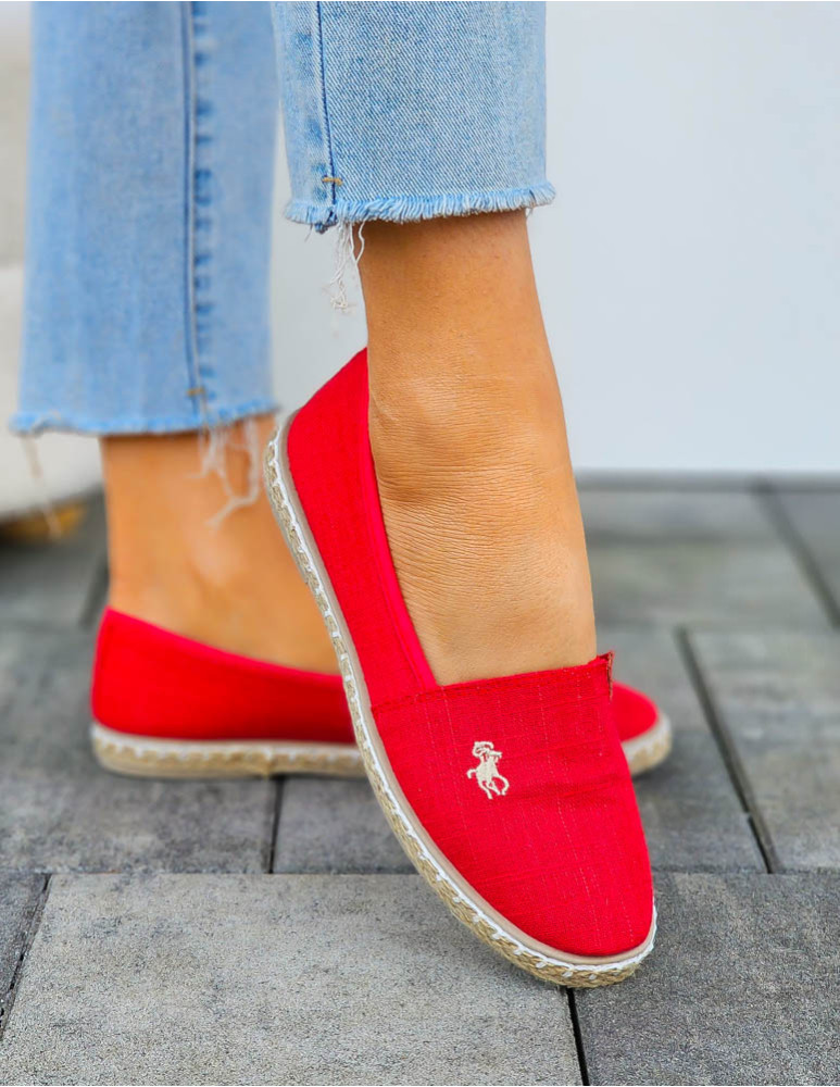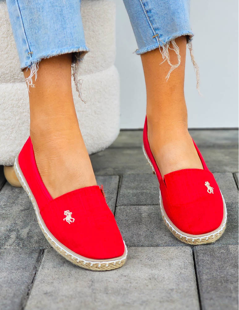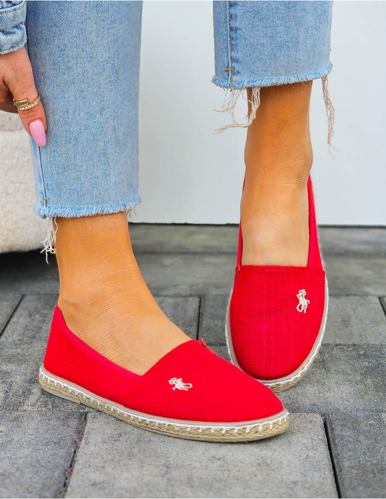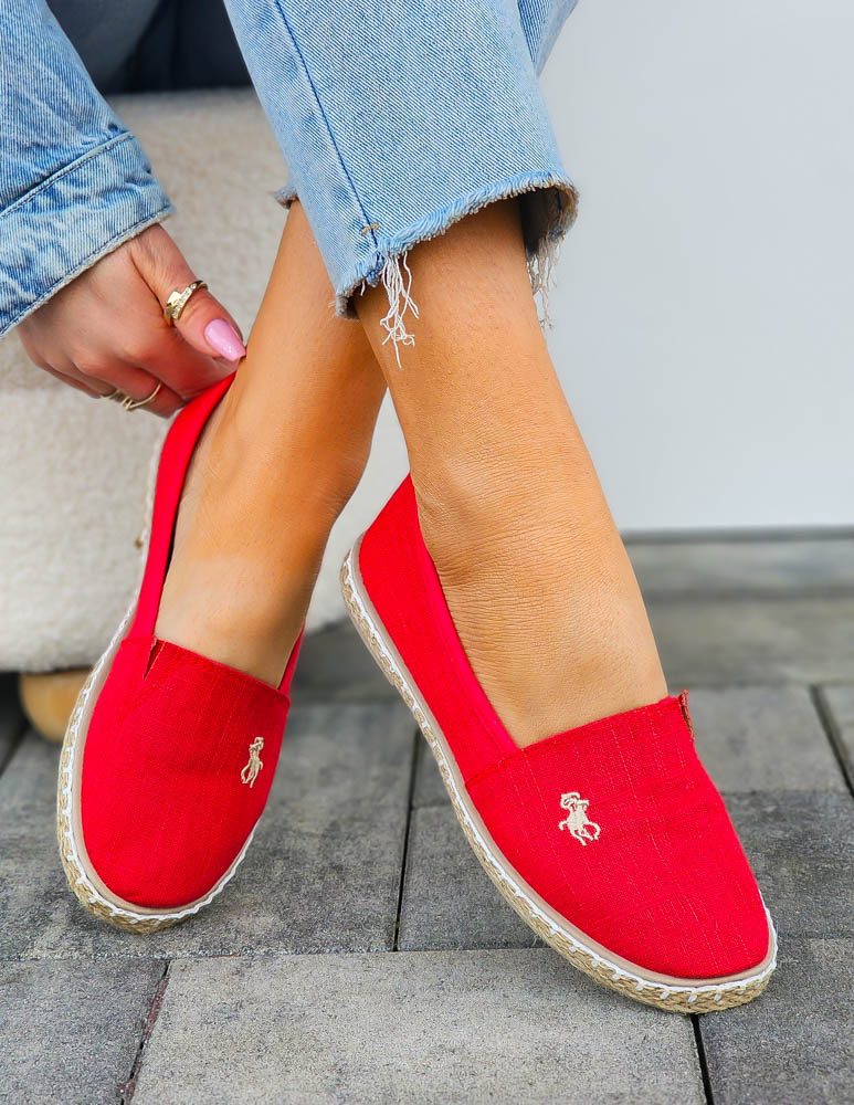 Czerwone Espadryle Mokasyny Na Plecionej Podeszwie Must