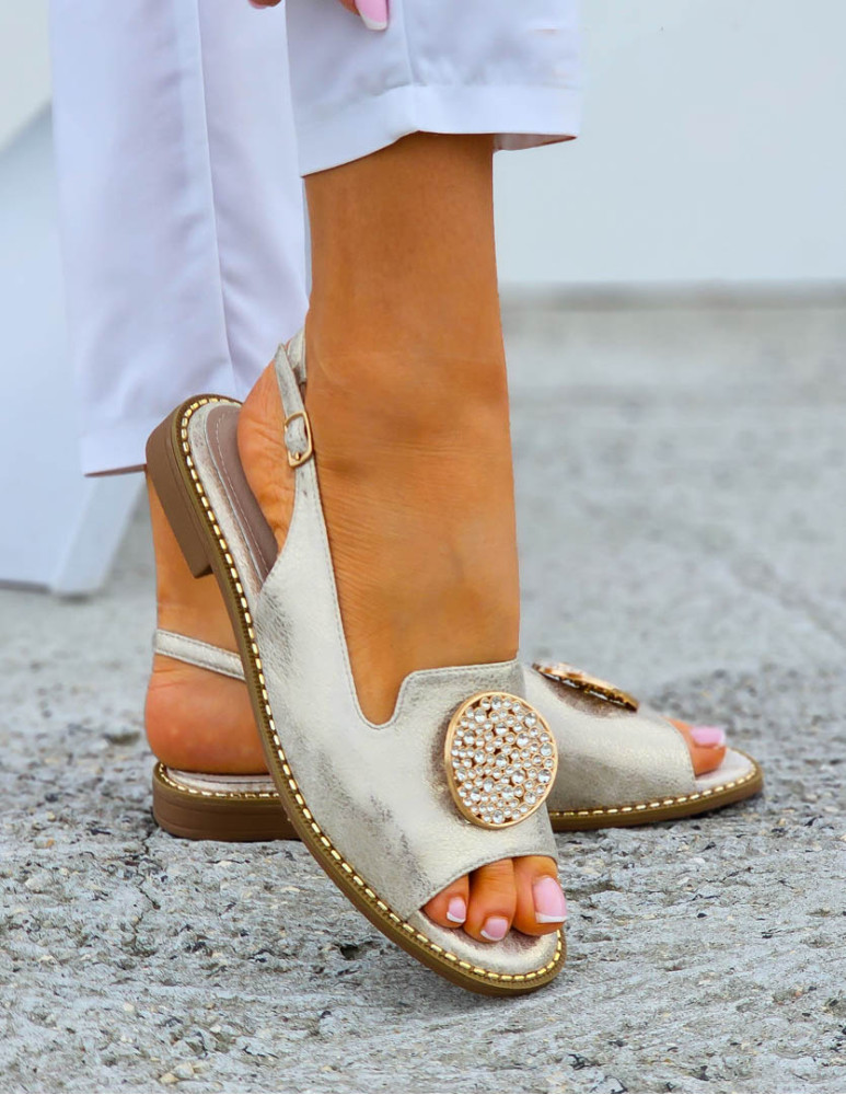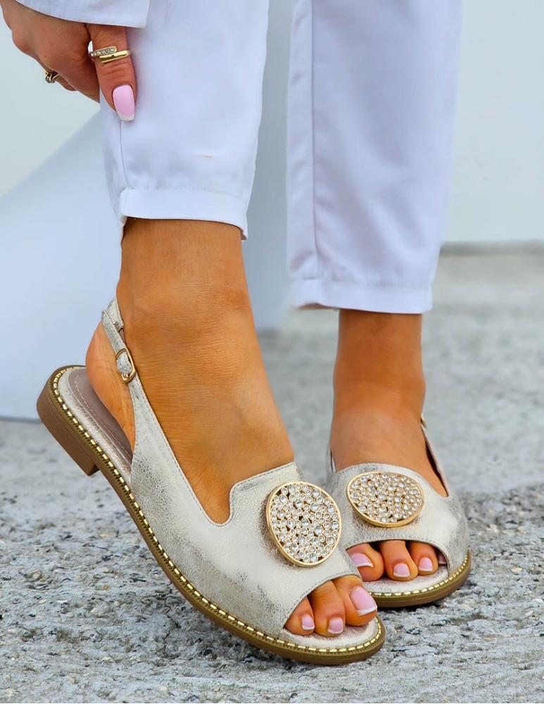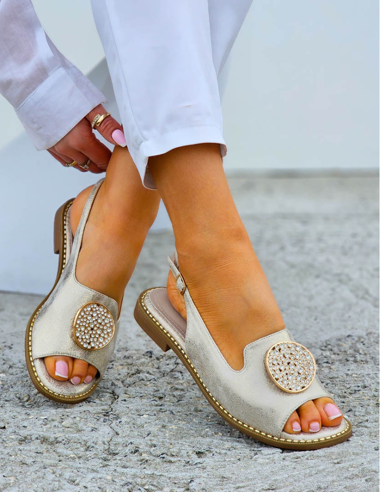 Eleganckie Sandały Damskie Ze Skóry Naturalnej Stonge Złote