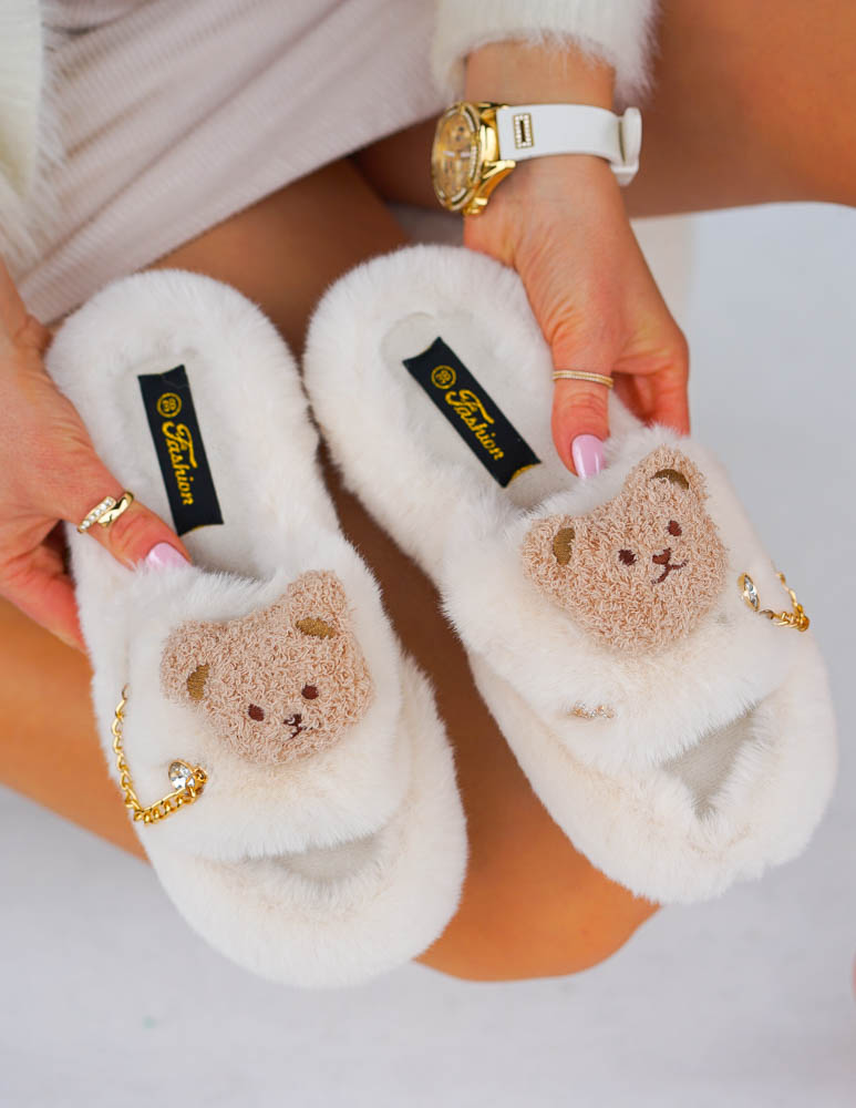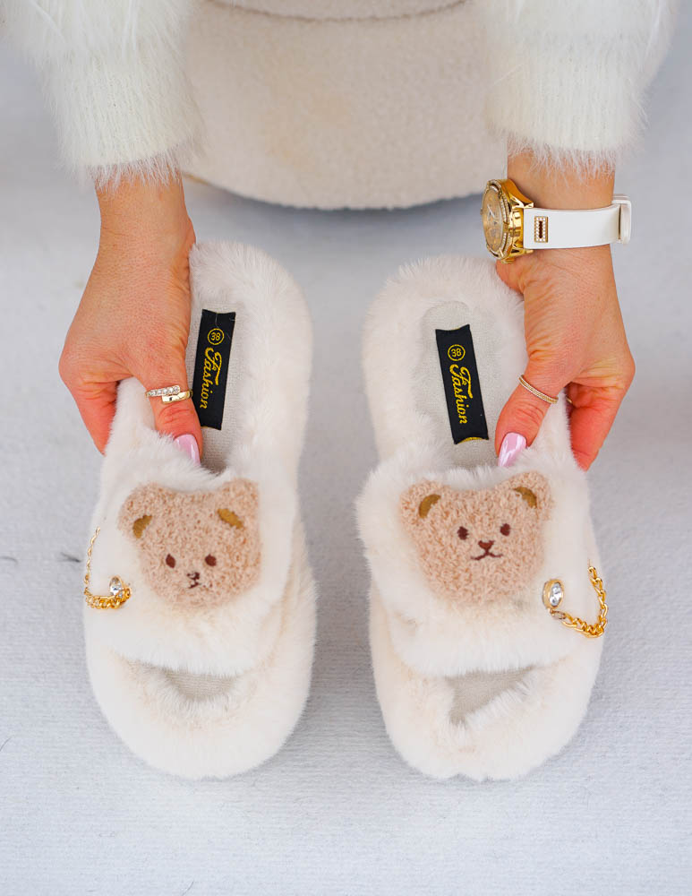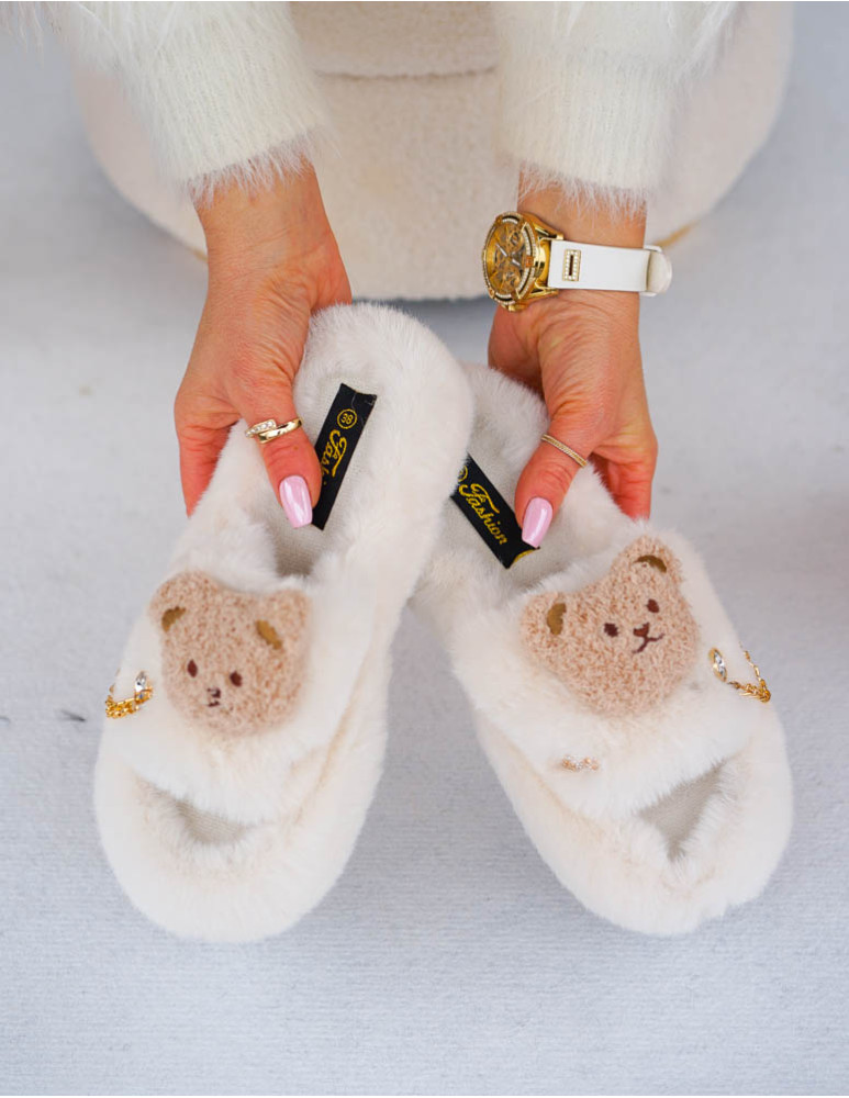Klapki Kapcie Po Domu z Futerkiem Teddy Beżowe