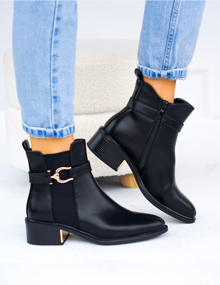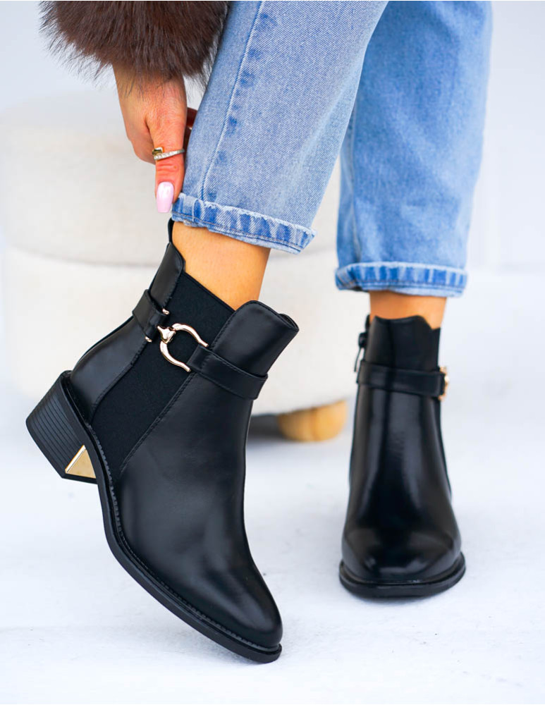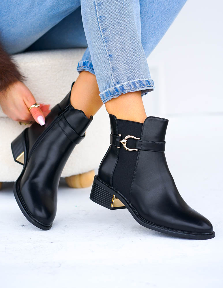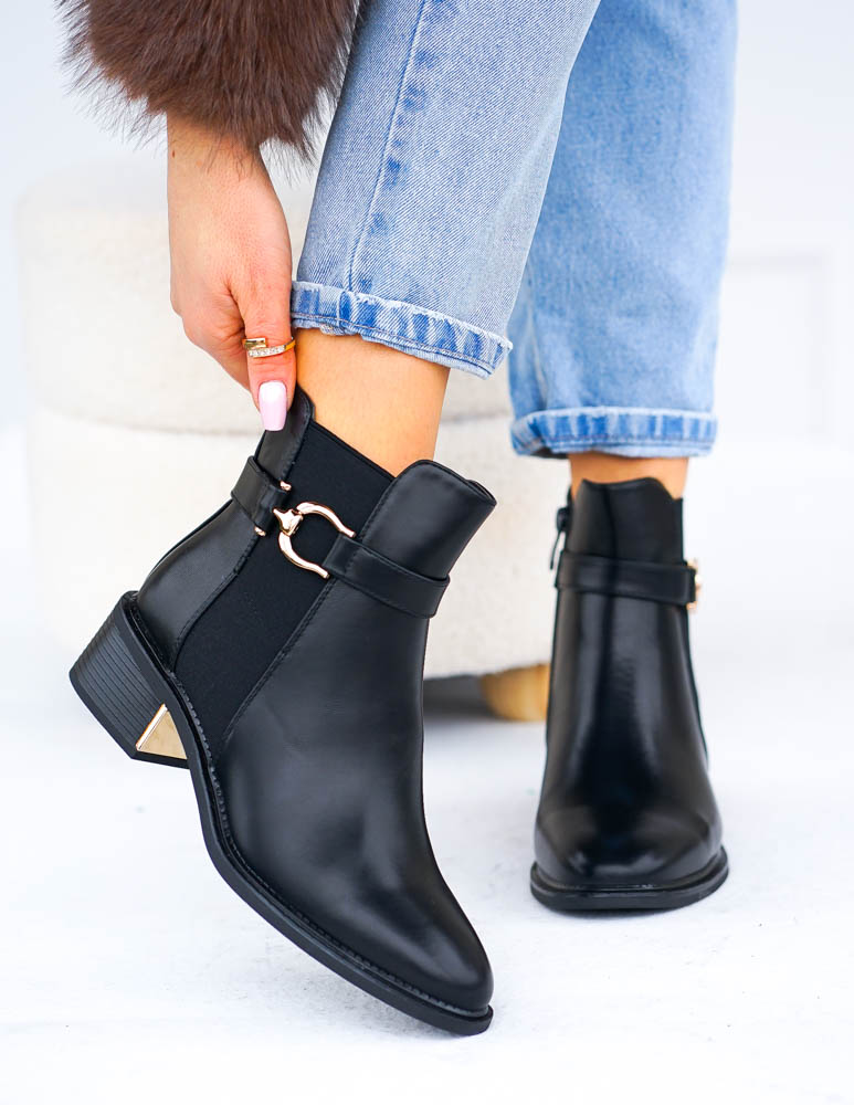 ❤ Modne i tanie buty on-line❤Klasyczne, czarne botki na niskim obcasie❤ Botki a`lla kowbojki ze..