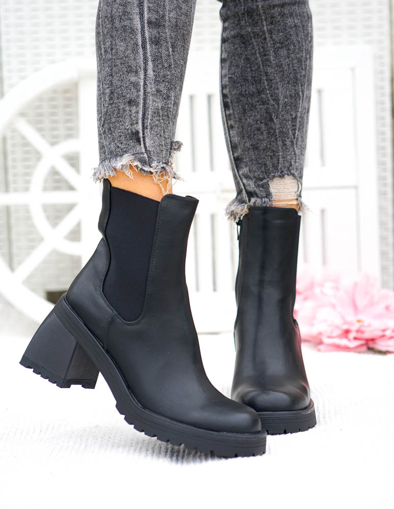 Klasyczne Czarne Botki Damskie Na Obcasie Basic