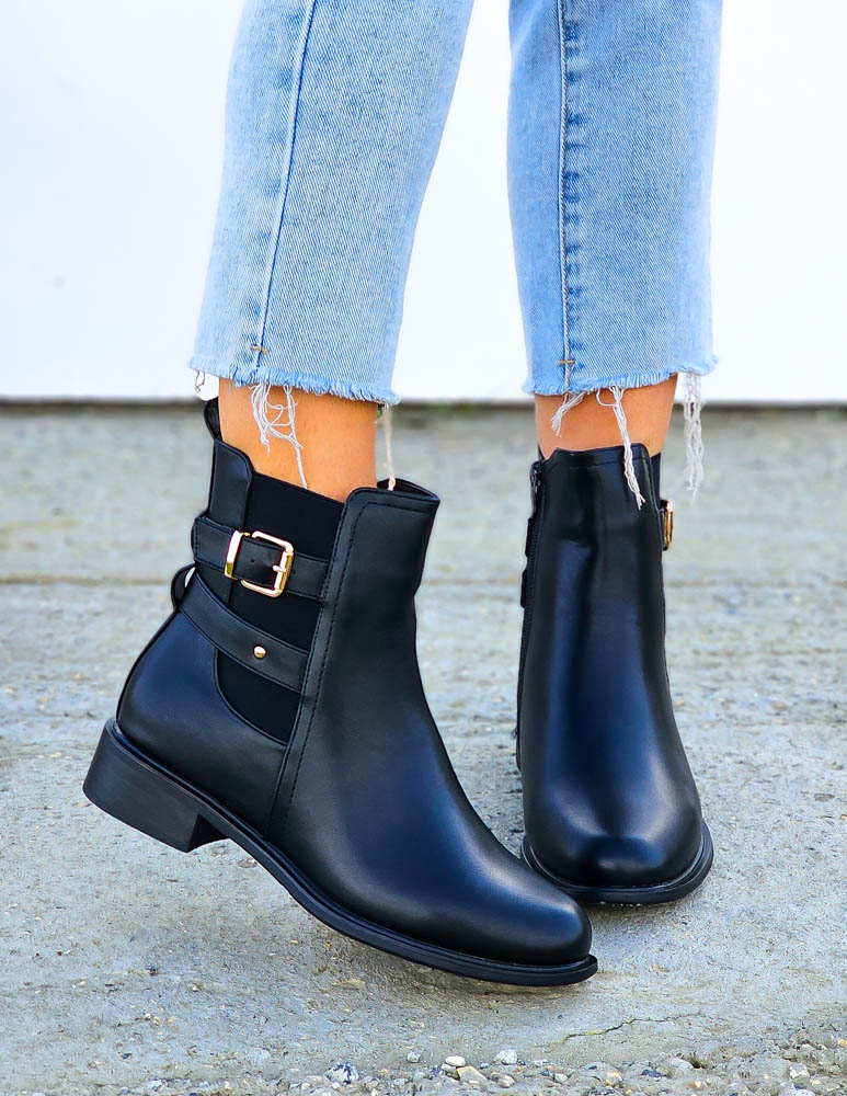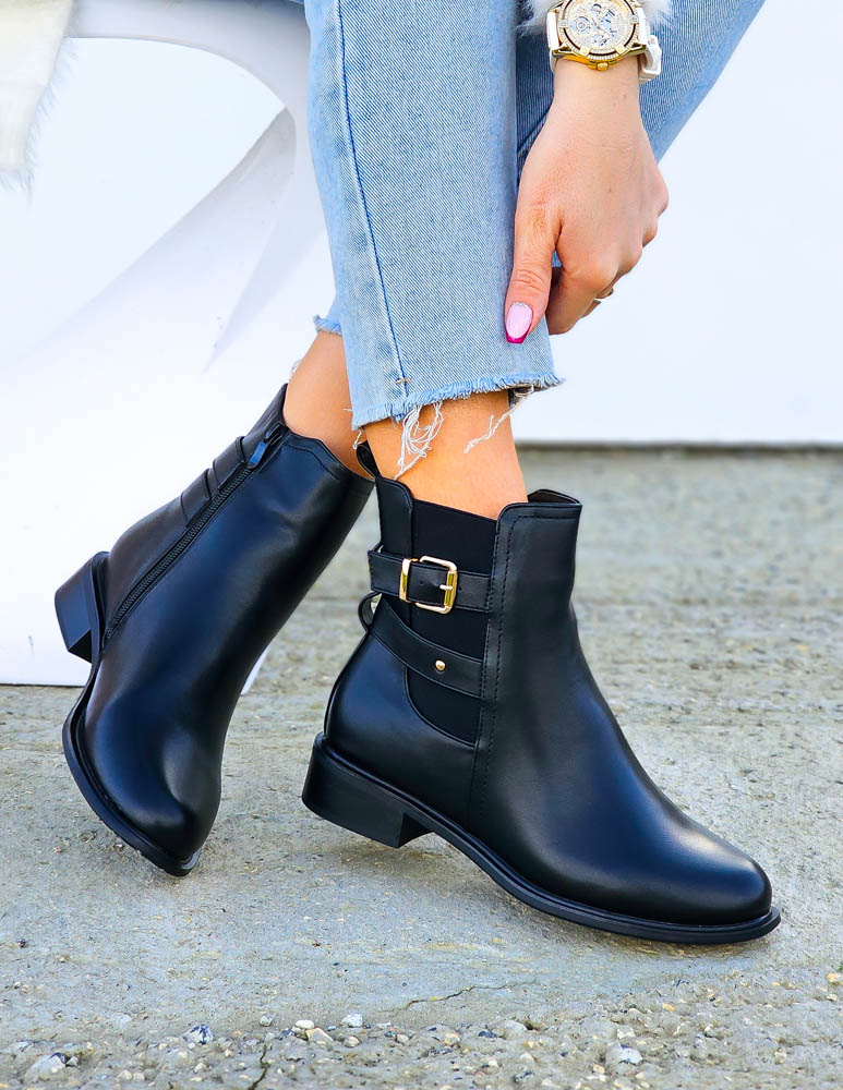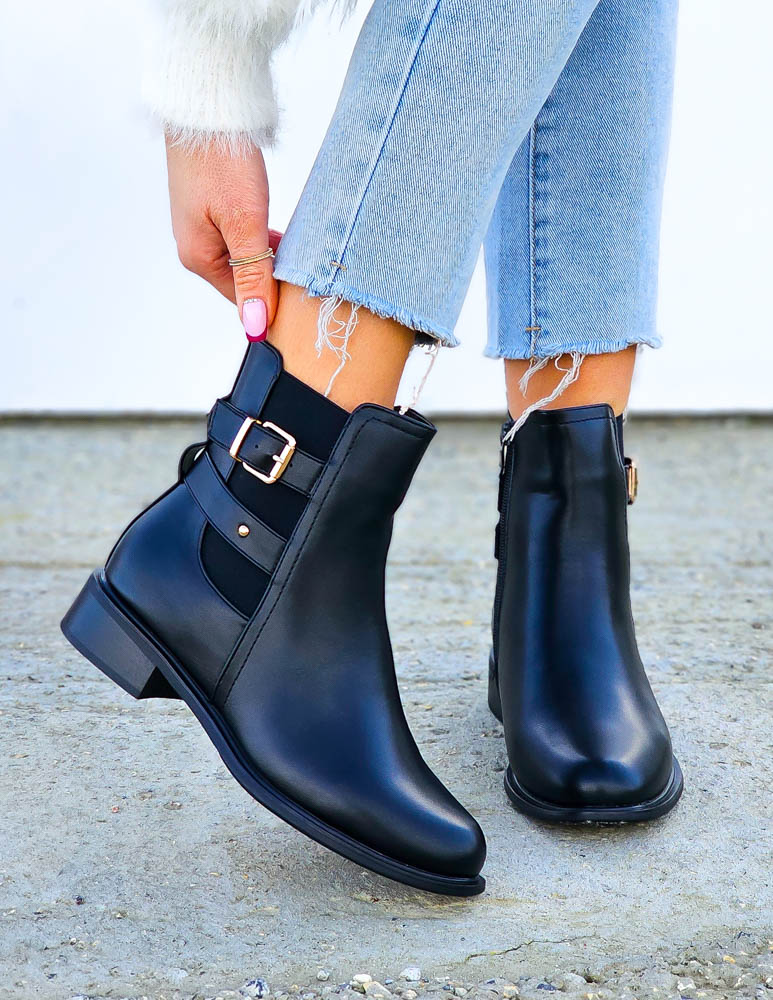❤ Modne i tanie buty on-line❤Klasyczne, czarne botki na niskim obcasie❤ Botki a`lla kowbojki ze..