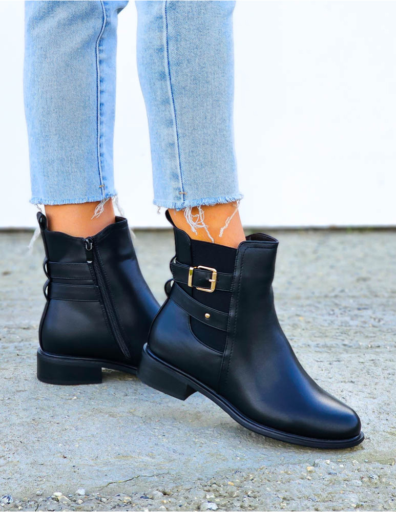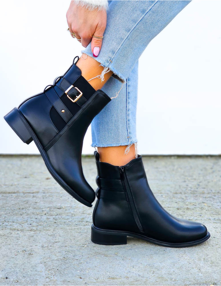 Krótkie Czarne Botki Z Gumami Na Platformie Mauris
