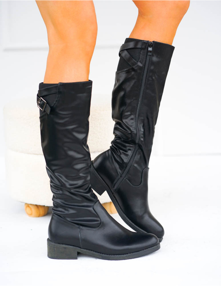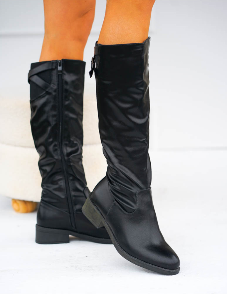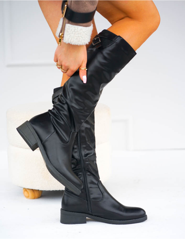 ❤Klasyczne, skórzane długie kozaki na płaskim spodzie