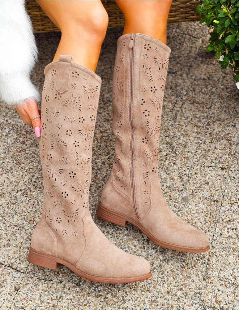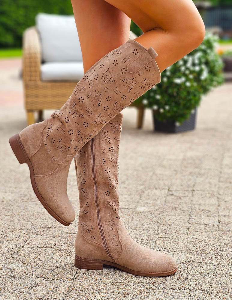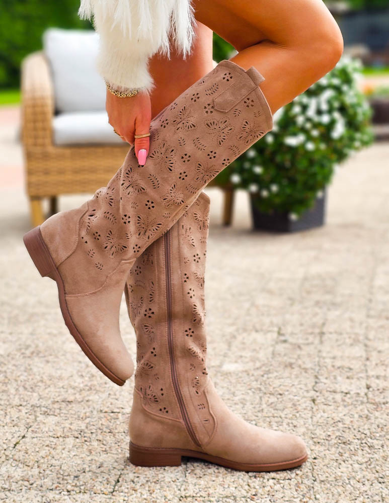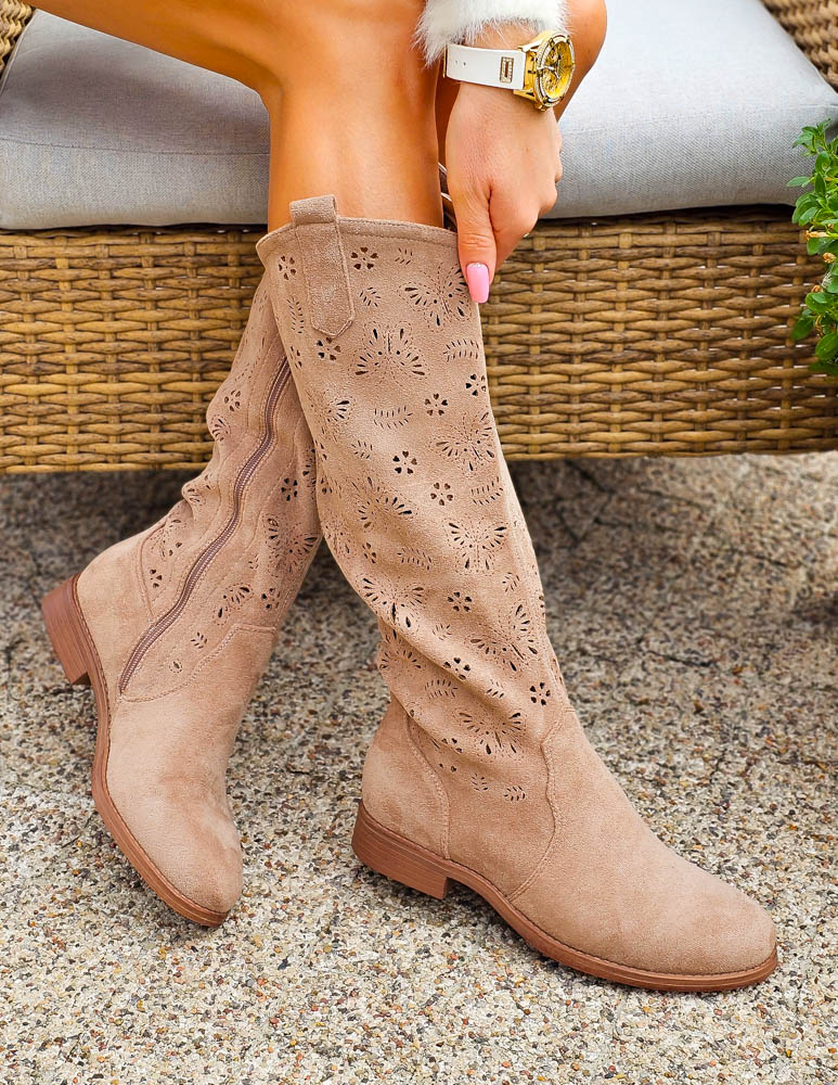 Jasno Brązowe Zamszowe Kozaki Ażurowe Hills