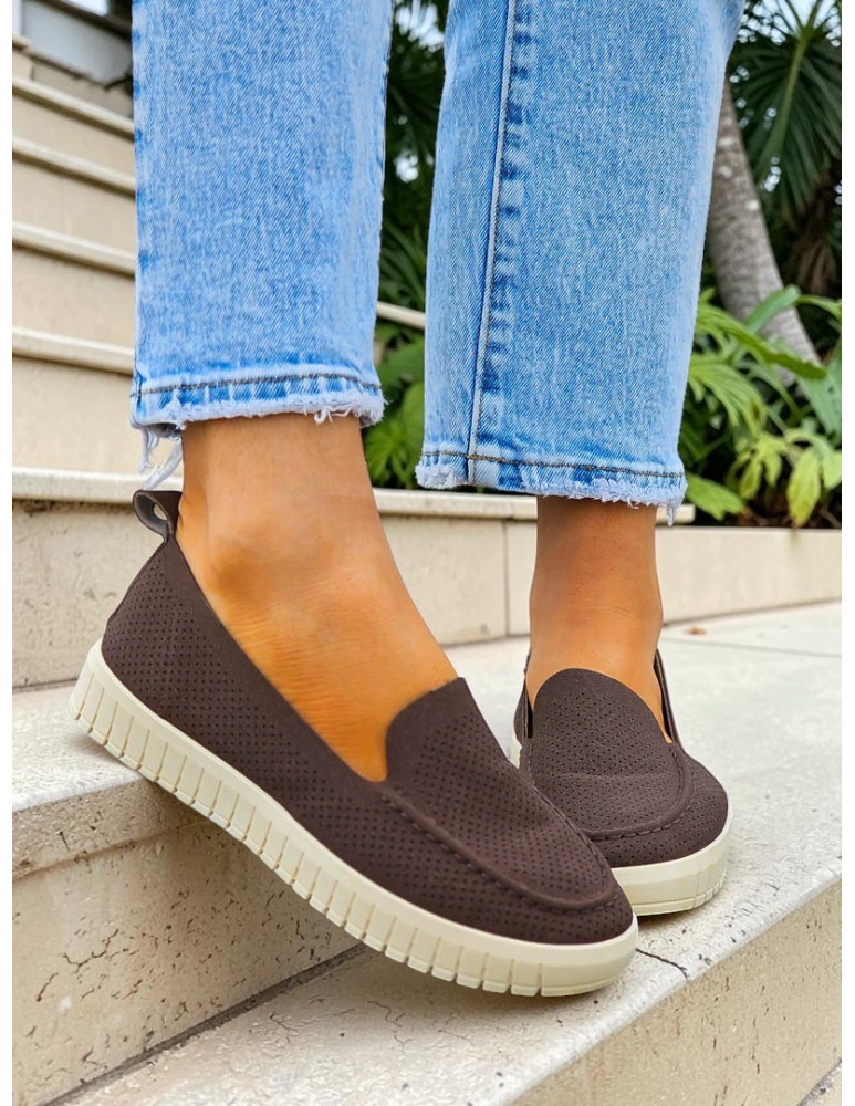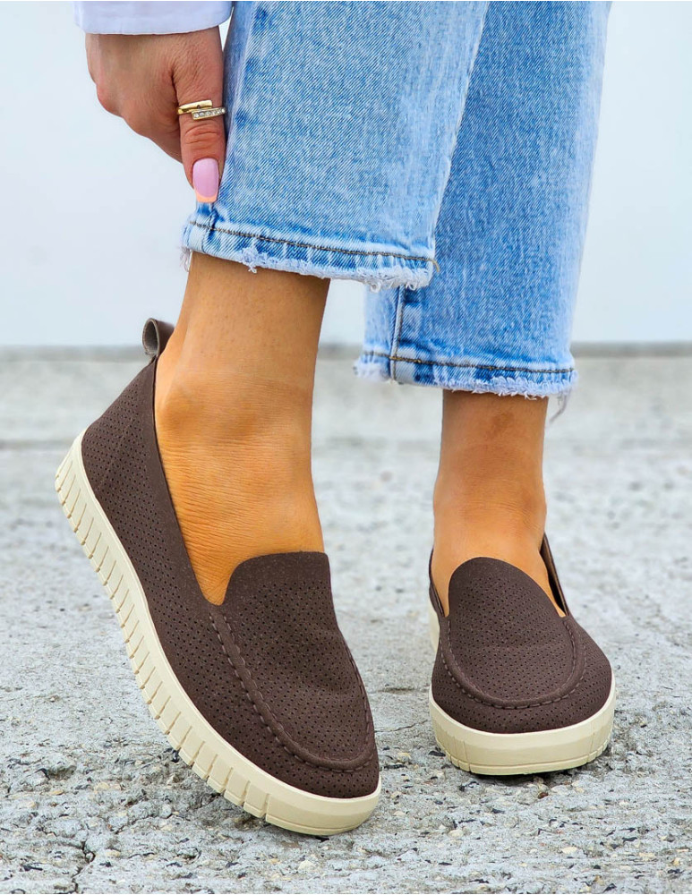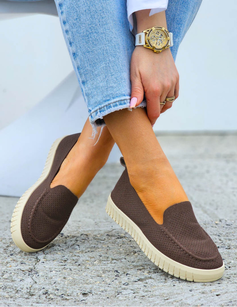 Lekkie Półbuty Mokasyny Na Grubej Podeszwie Mięciutkie Brązowe
