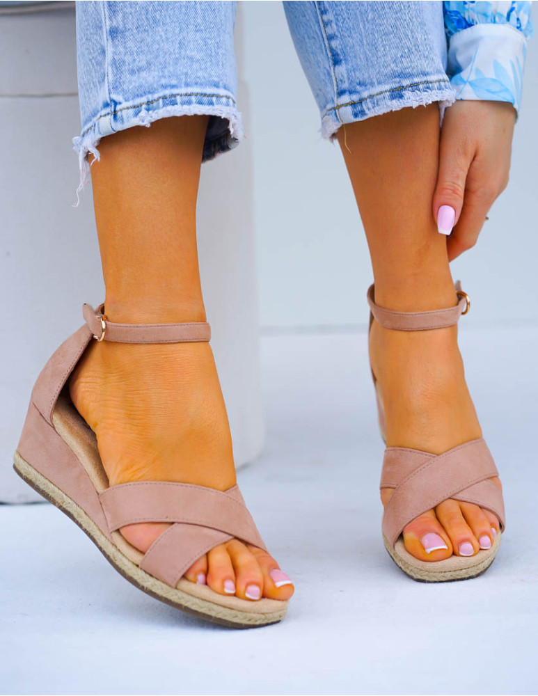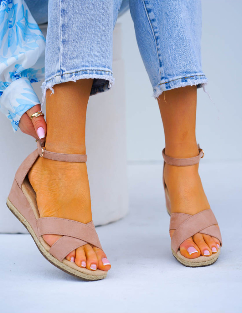 Lekkie Sandały Na Niskiej Koturnie Louisa Beżowe