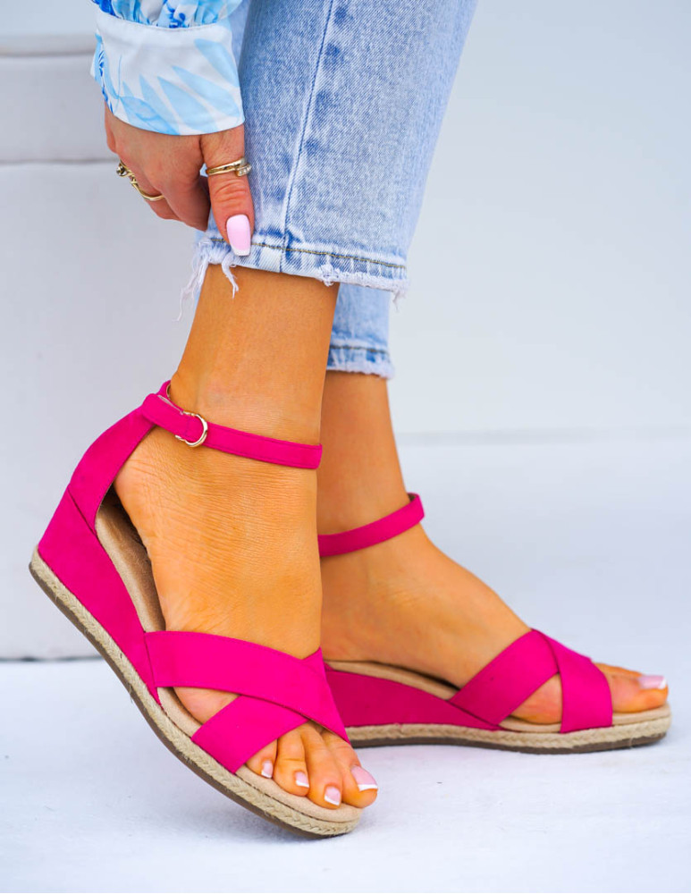 Lekkie Sandały Na Niskiej Koturnie Louisa Różowe