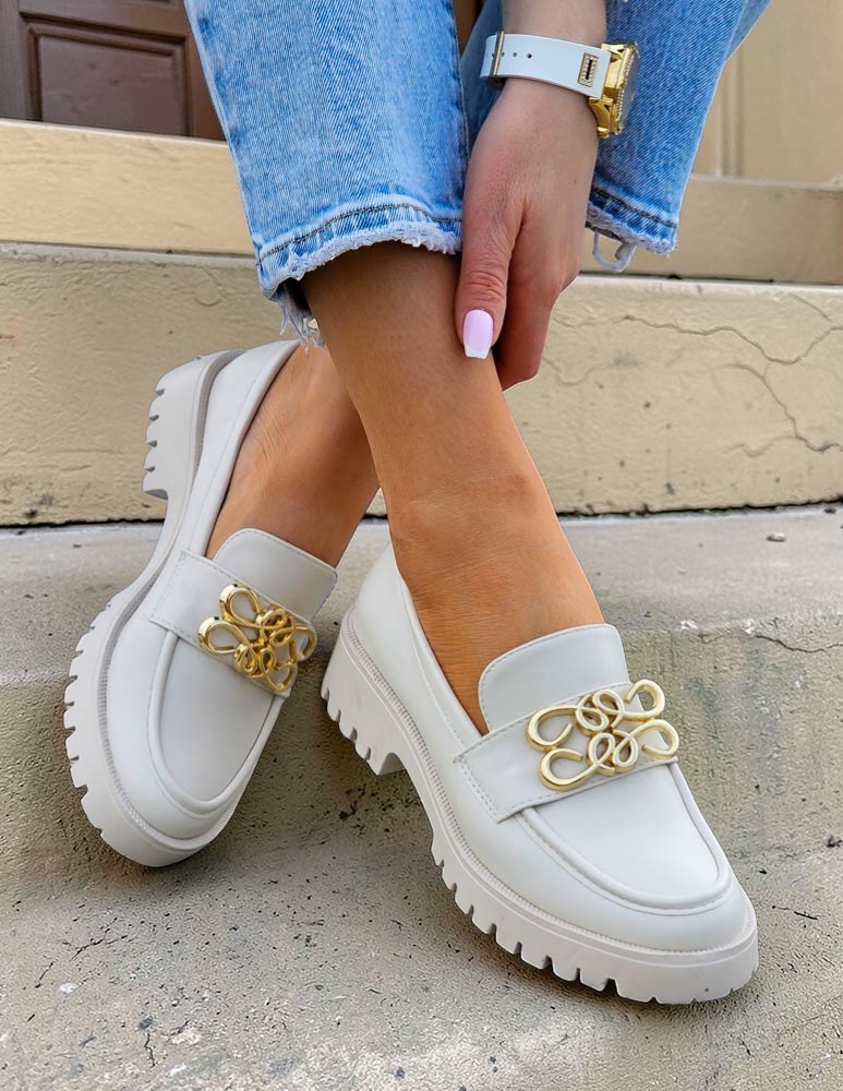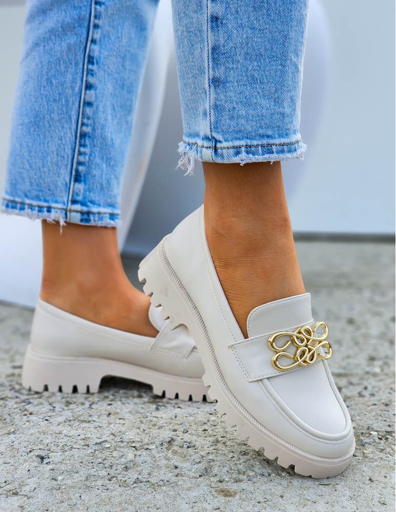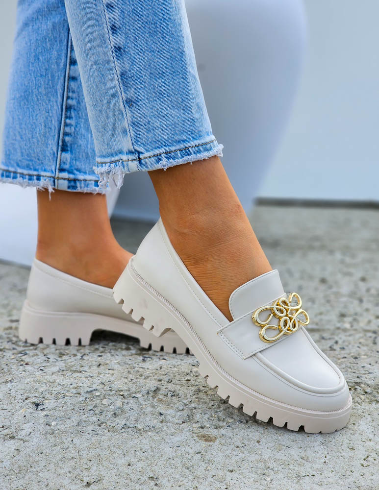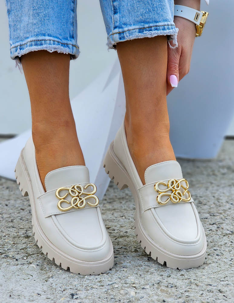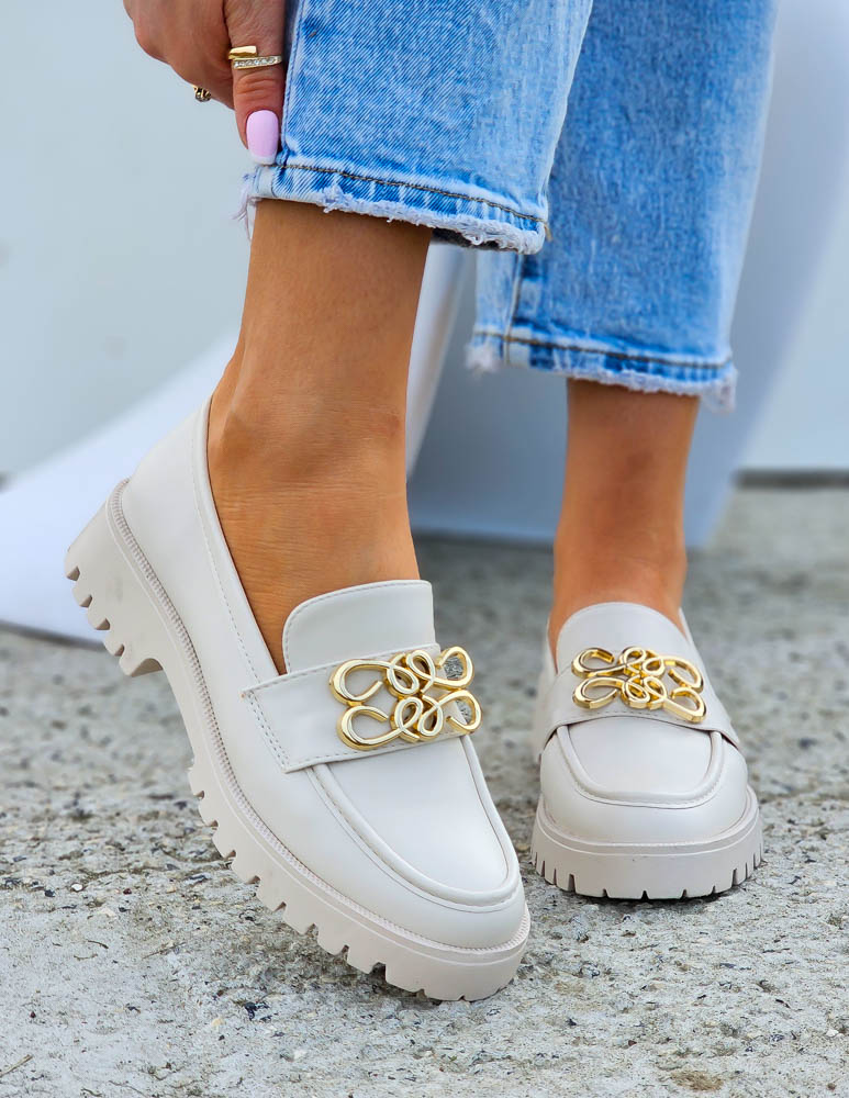 Beżowe Mokasyny Na Grubej Podeszwie Ze Skóry Malme