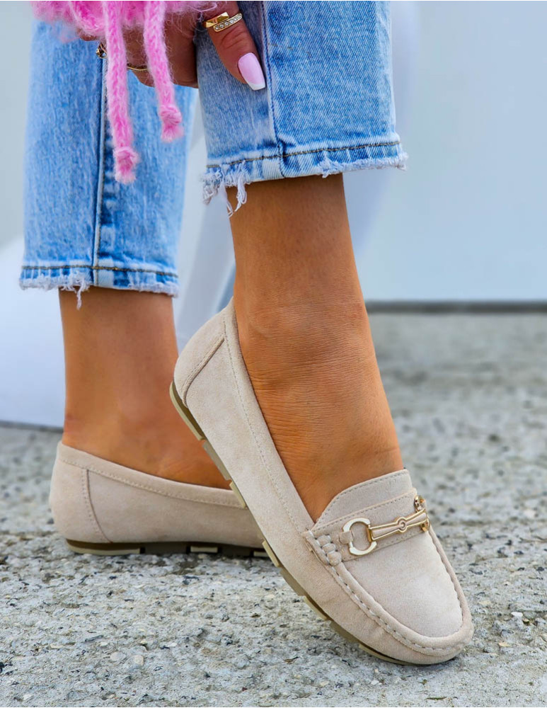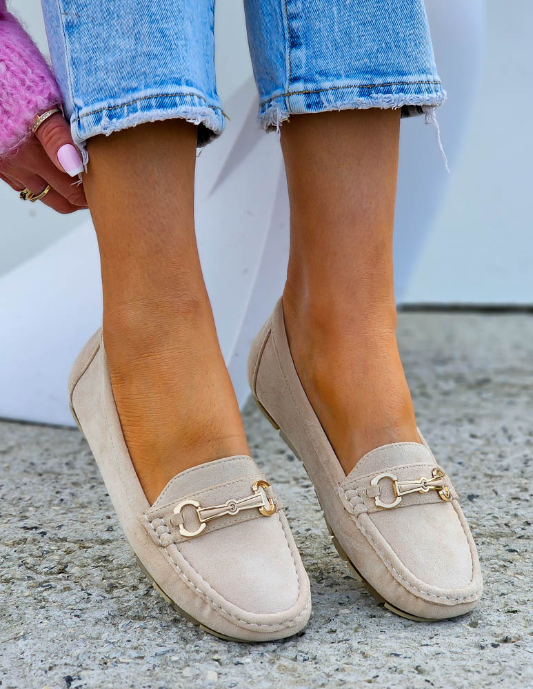 Beżowe Zamszowe Mokasyny Półbuty Baleriny Vicky