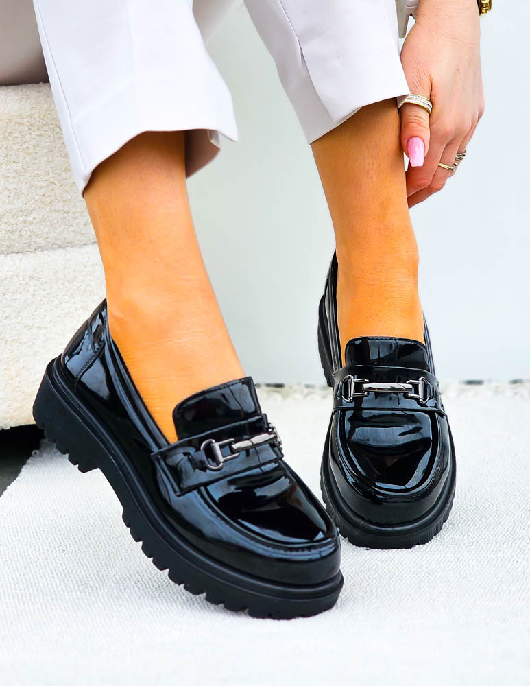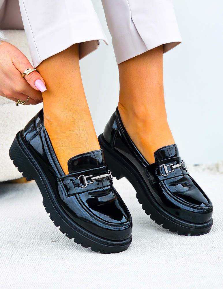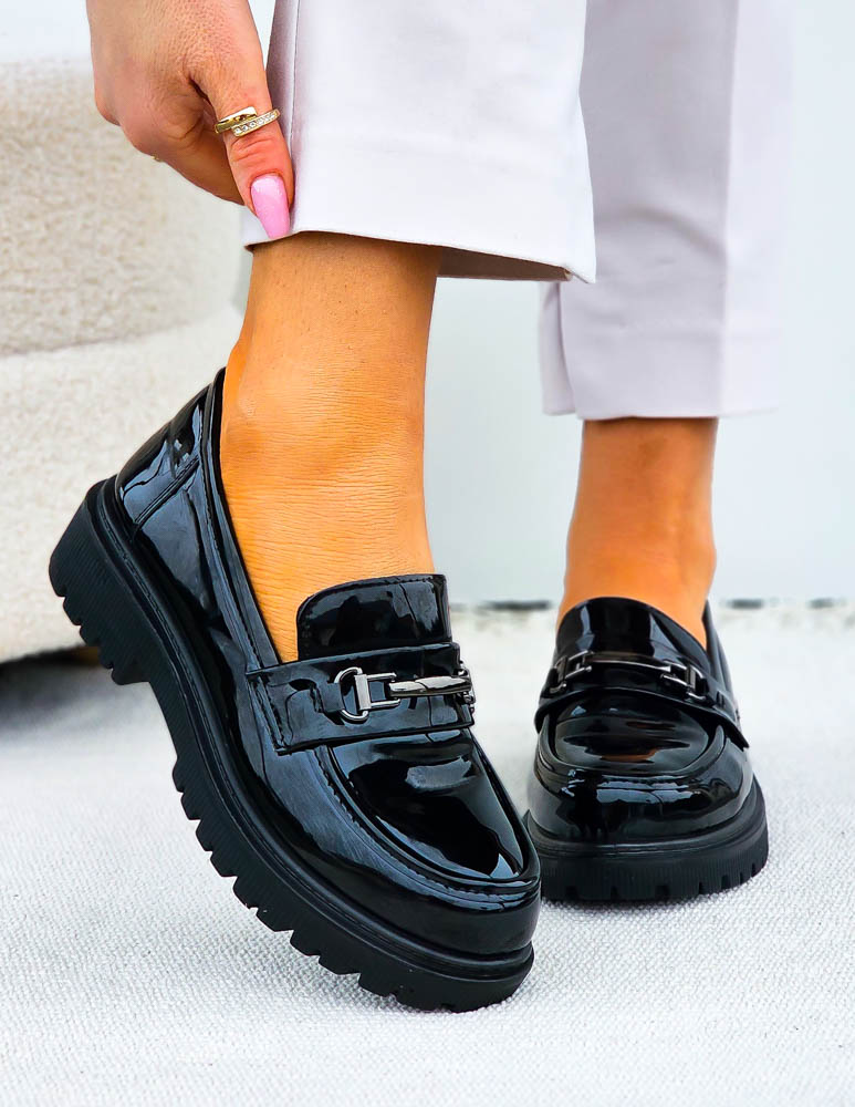 • Kod produktu: Czarne Lakierowane Mokasyny Na Platformie Shilla