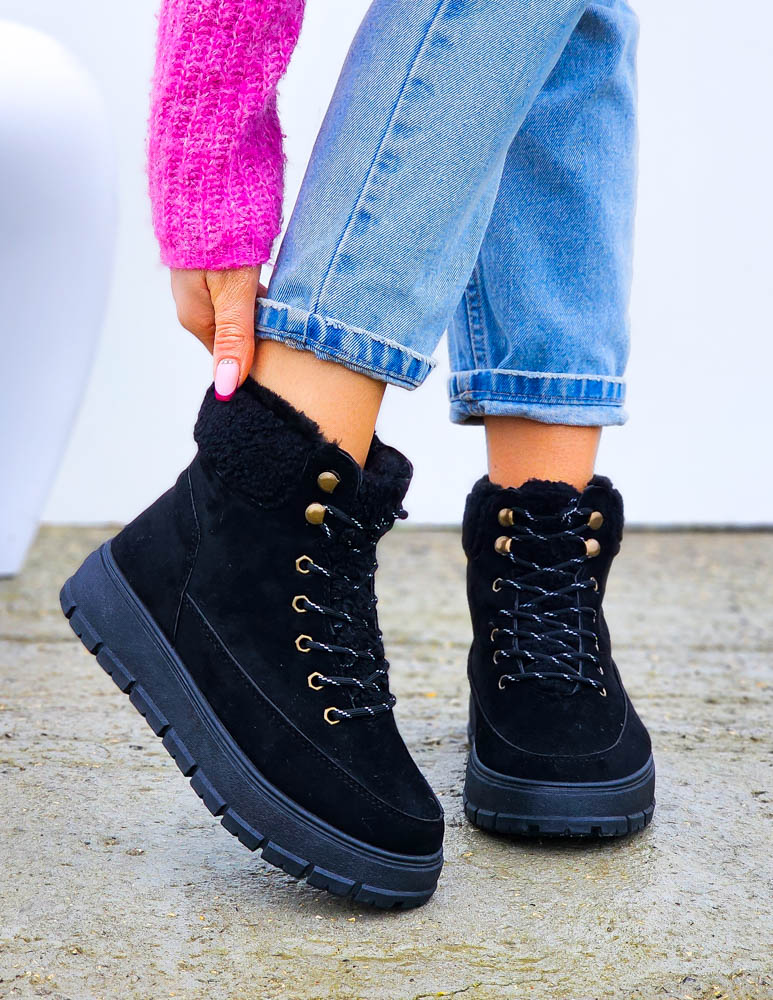Krótkie Czarne Zamszowe Botki Na Koturnie Save
