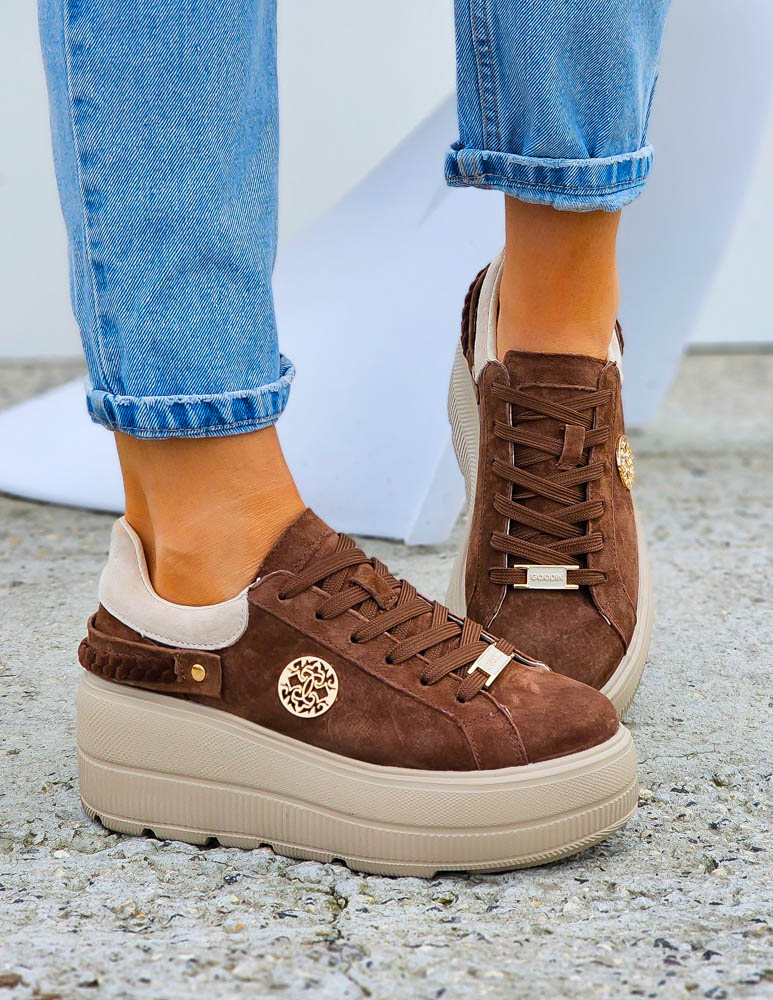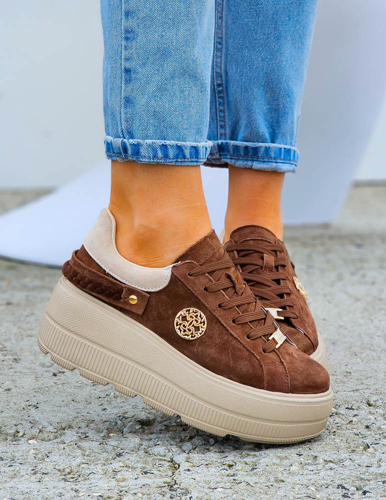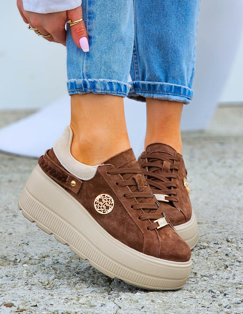 Premium Brązowe Skórzane Sportowe Półbuty Trampki Manolia