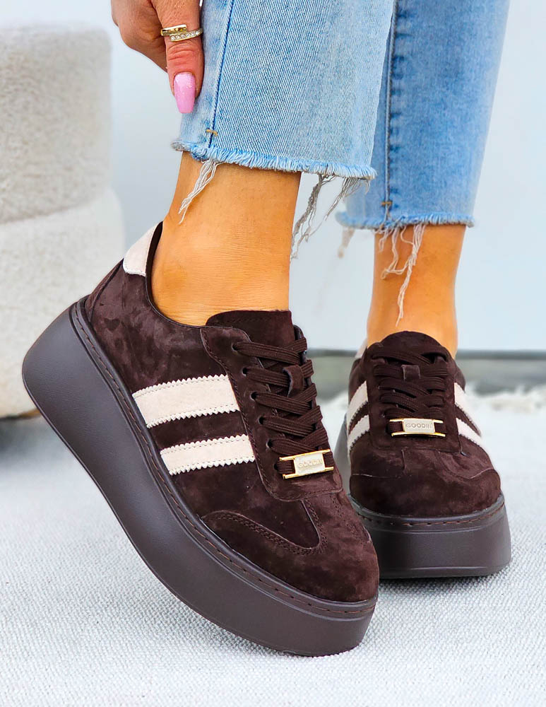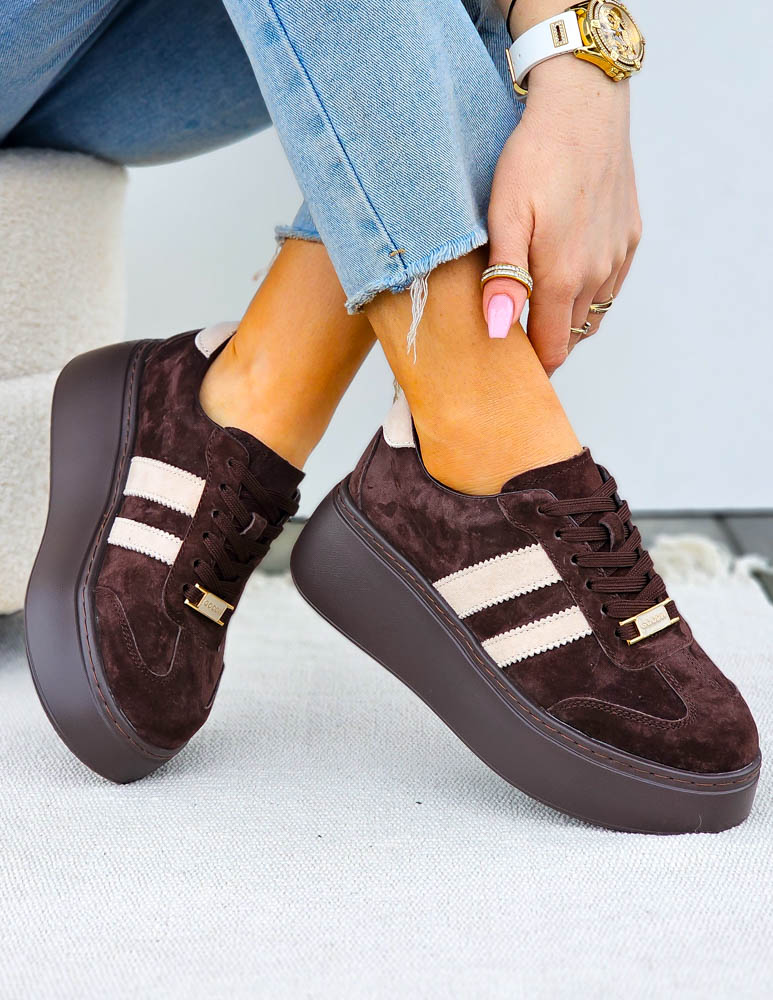 Premium Czekoladowe Skórzane Sportowe Półbuty Trampki Alissia
