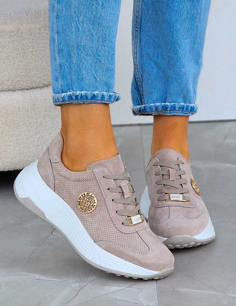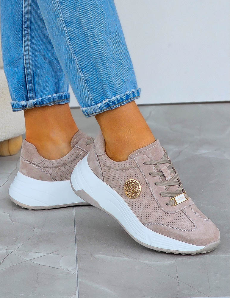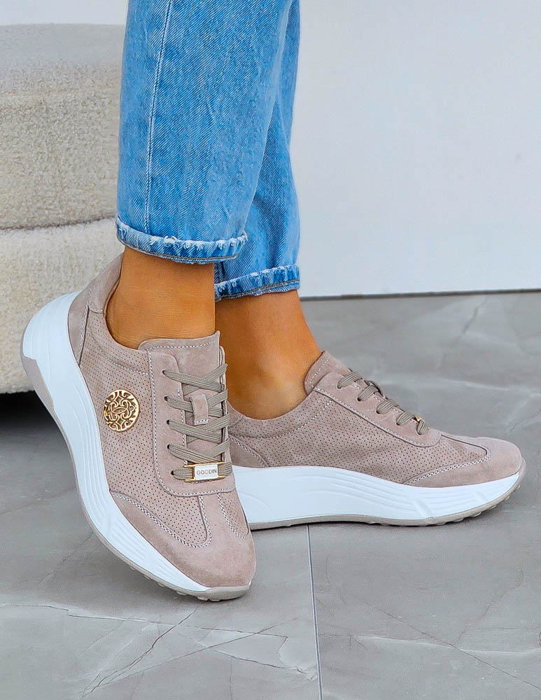 Premium Eleganckie Skórzane Sportowe Półbuty Trampki Latte