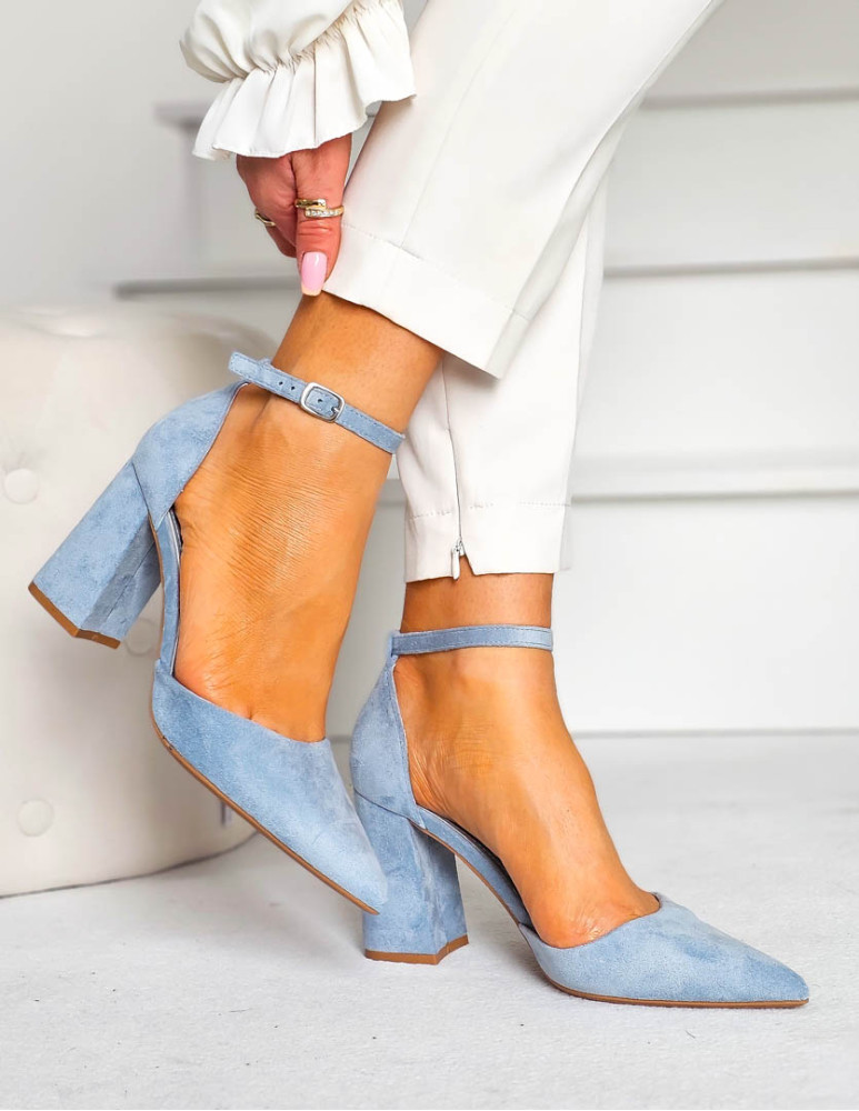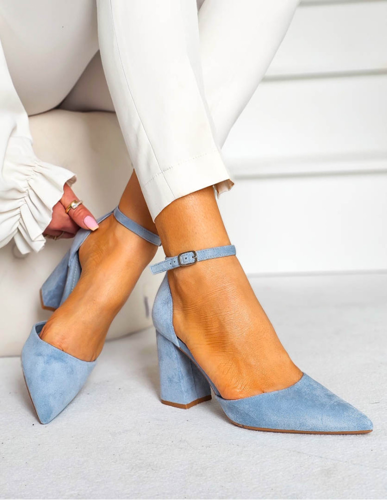- Kod produktu: Sandały Damskie Na Obcasie Zakryte Place Pięty Niebieskie