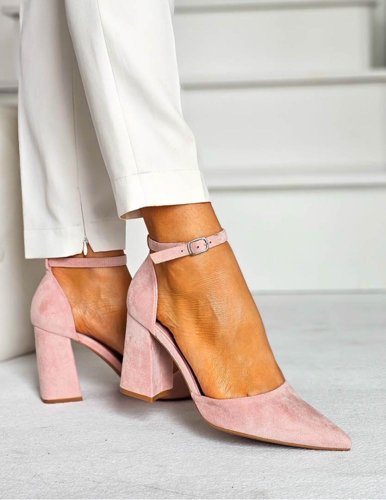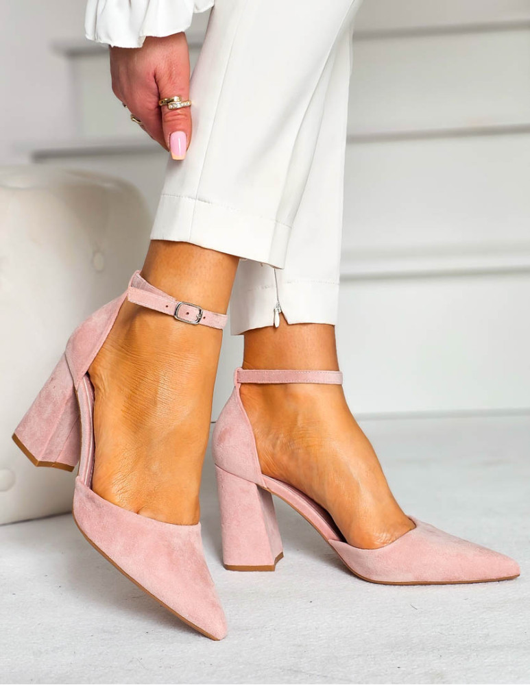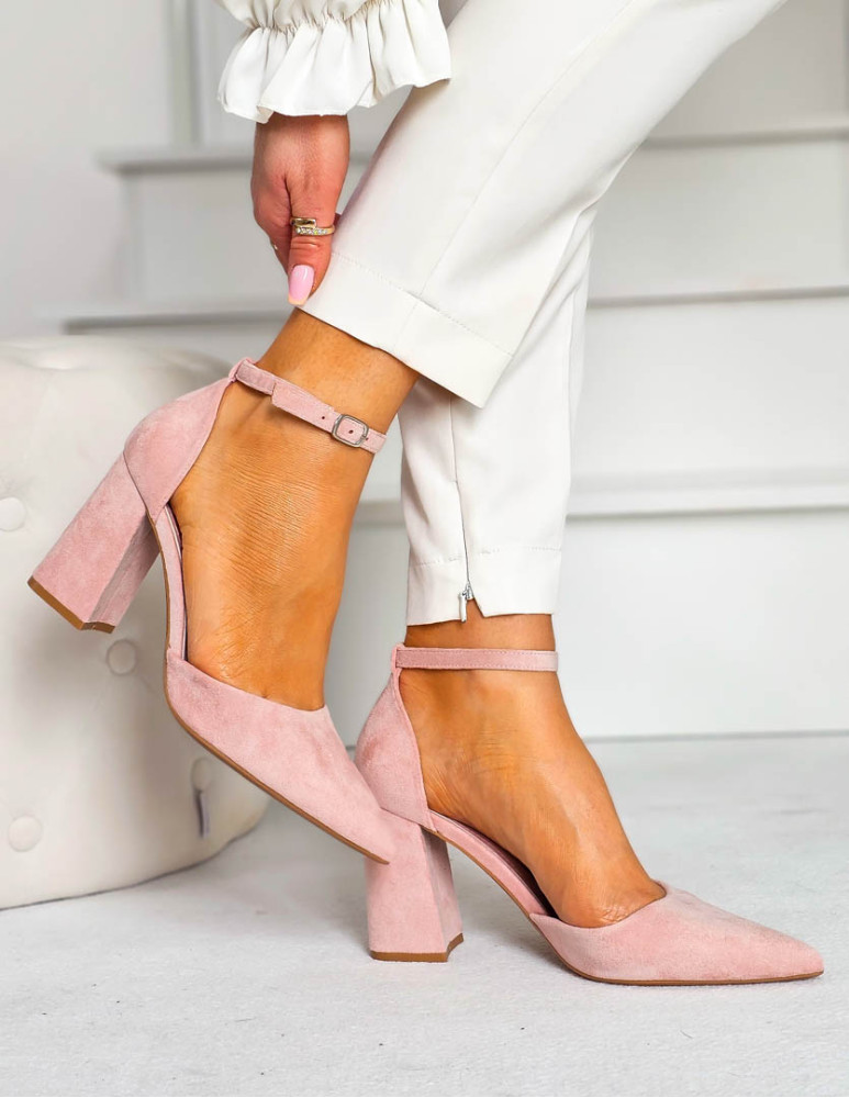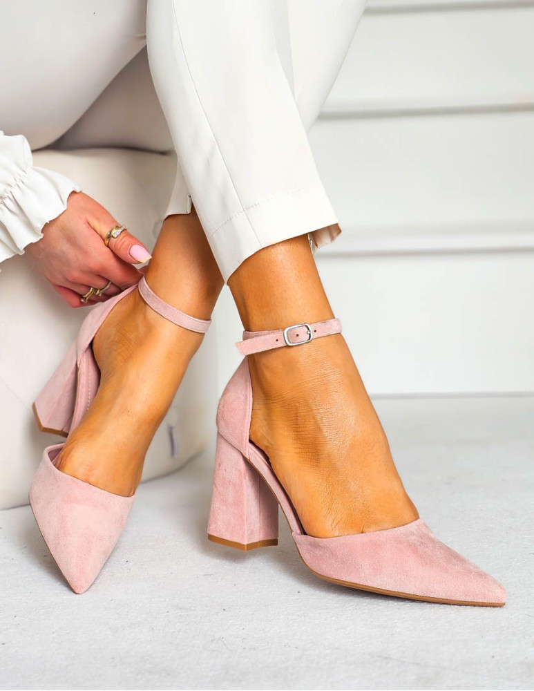- Kod produktu: Sandały Damskie Na Obcasie Zakryte Place Pięty Różowe