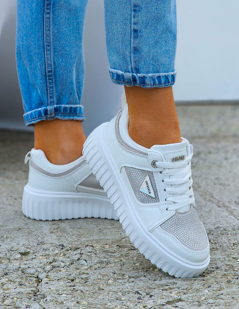 Białe Buty Sportowe Sneakersy Diamonds NiuMiu