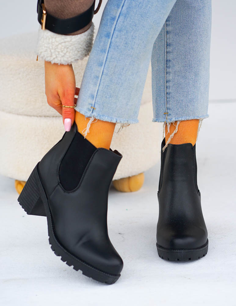 Klasyczne Czarne Botki Damskie Na Obcasie Basic