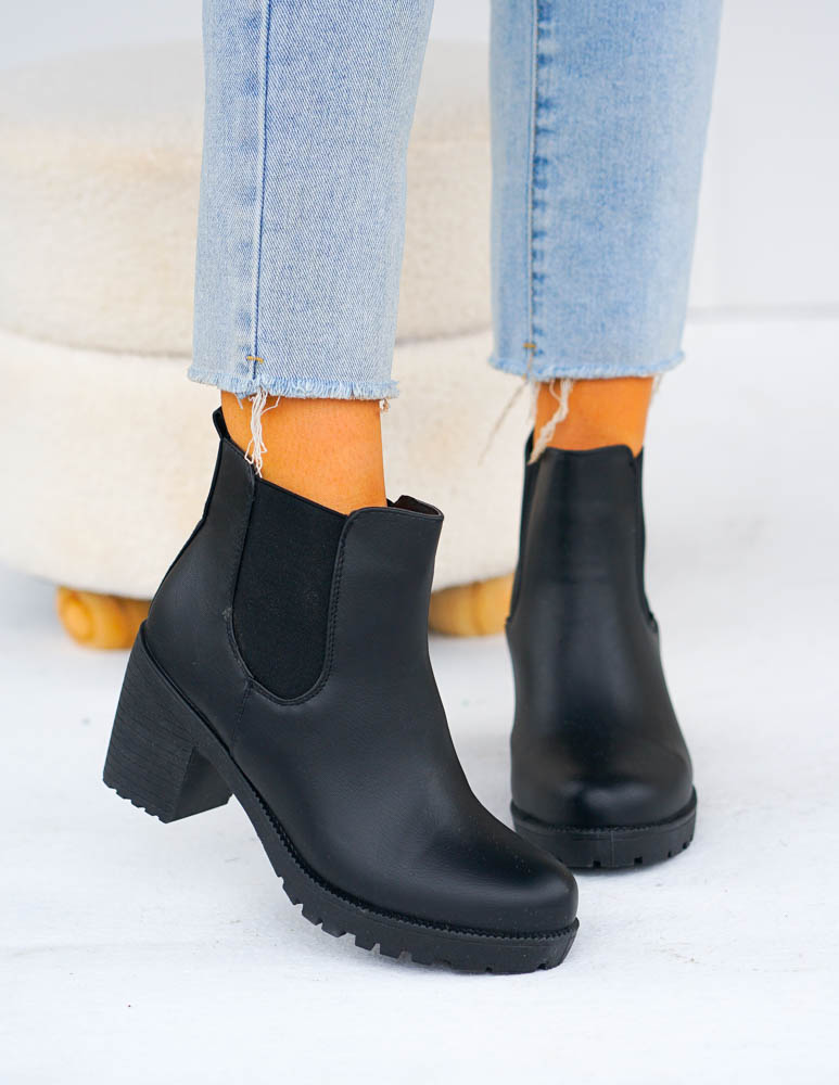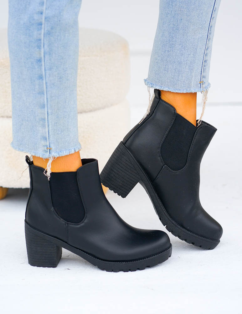 ❤ Efektowne botki na słupku z wstawkami z gumy