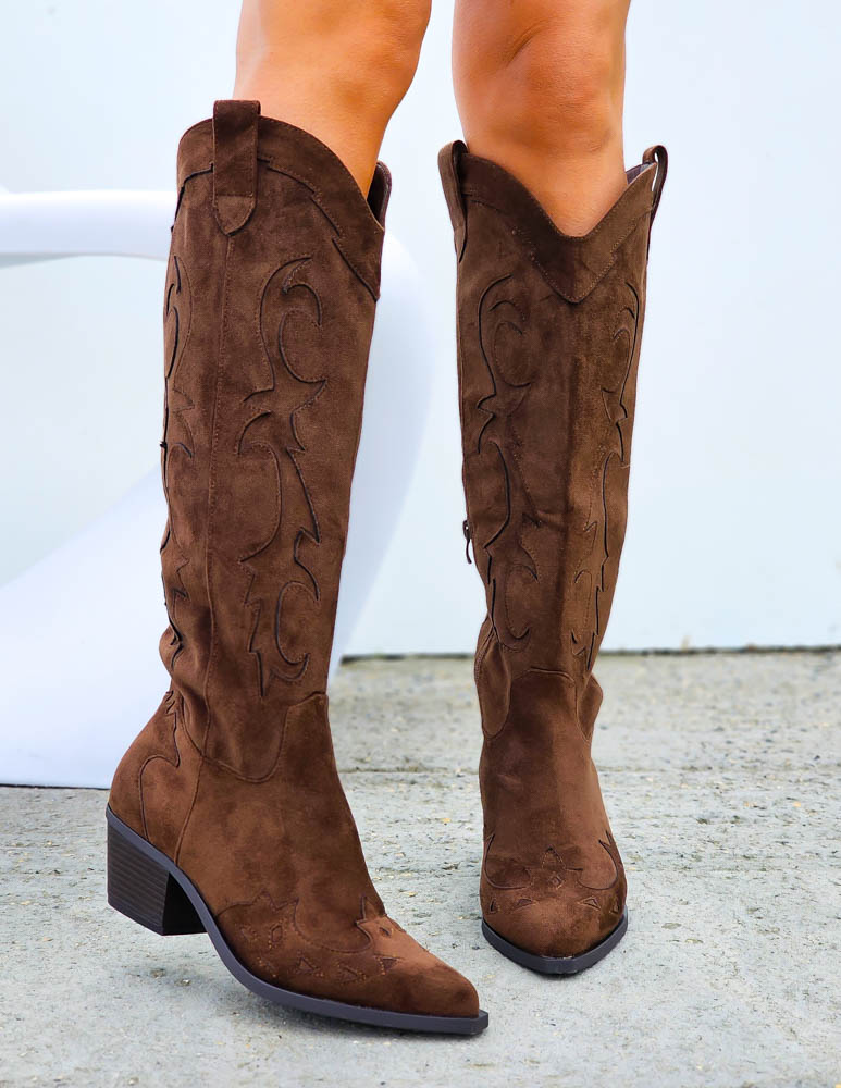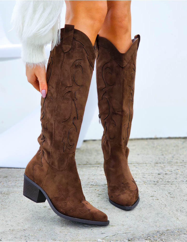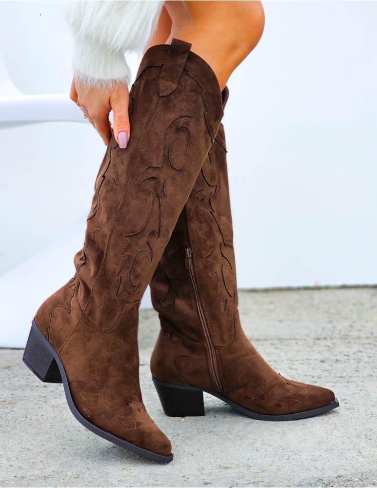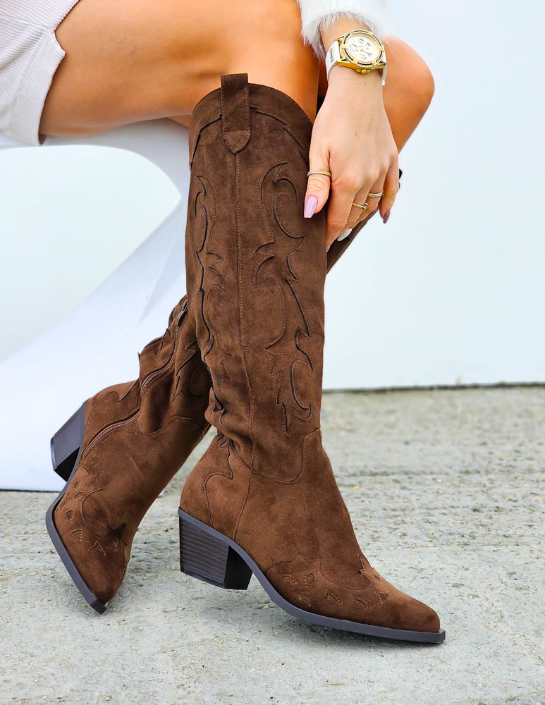 Czekoladowe Kozaki Kowbojki z Haftem Merlyn