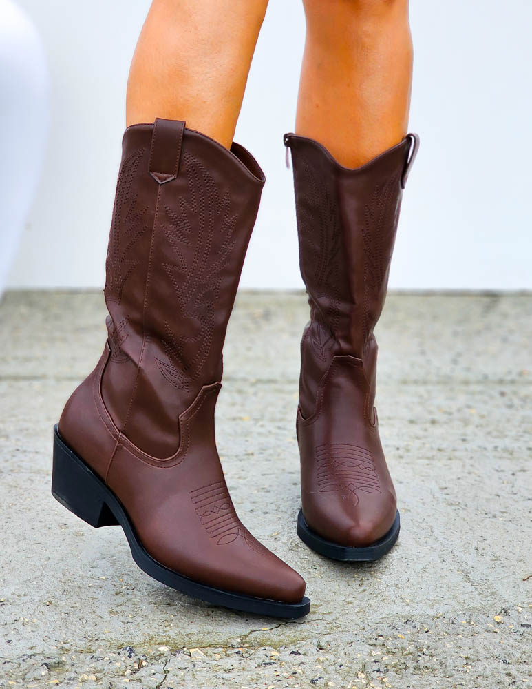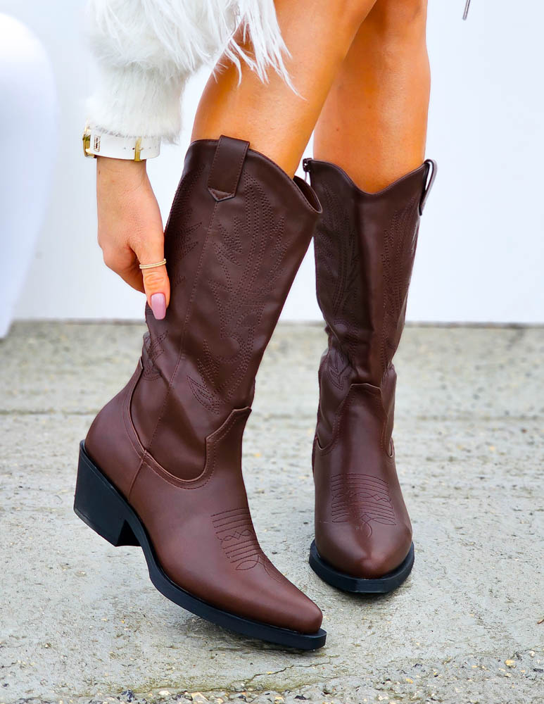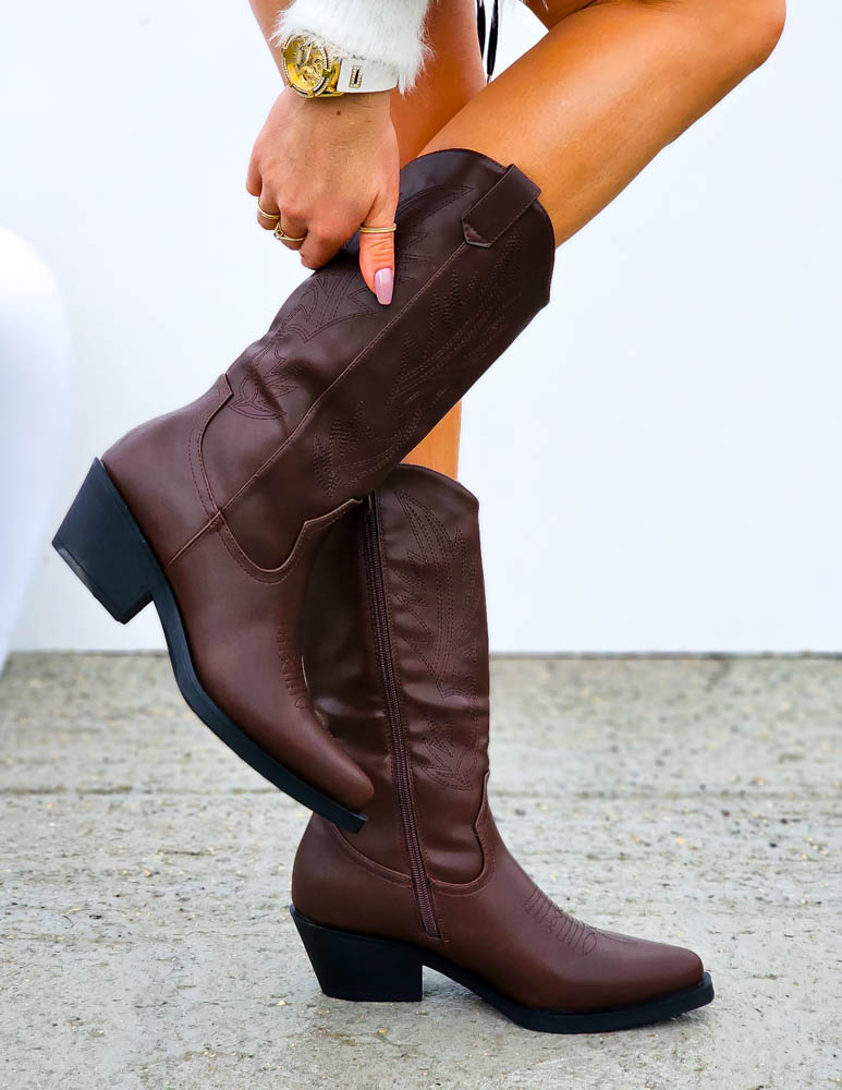 Czekoladowe Kozaki Kowbojki Ze Skóry Marshell