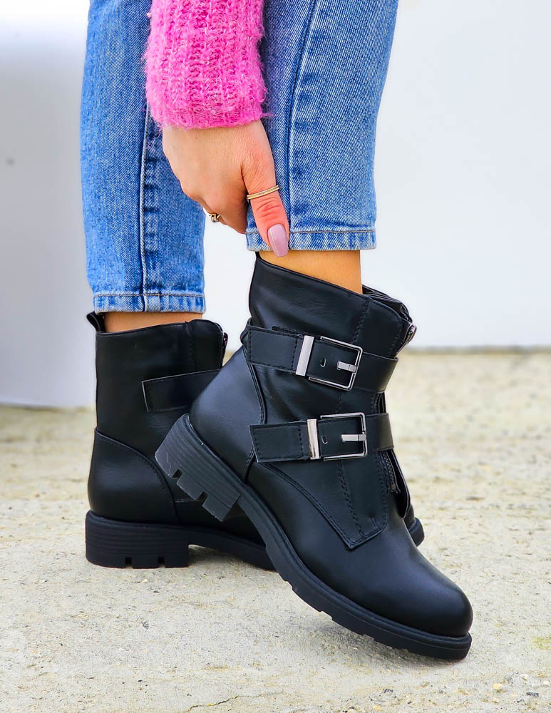 ❤ Modne i tanie buty on-line❤Klasyczne, czarne botki na niskim obcasie❤ Botki a`lla kowbojki ze..
