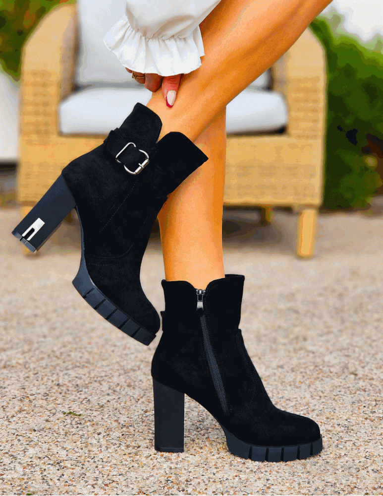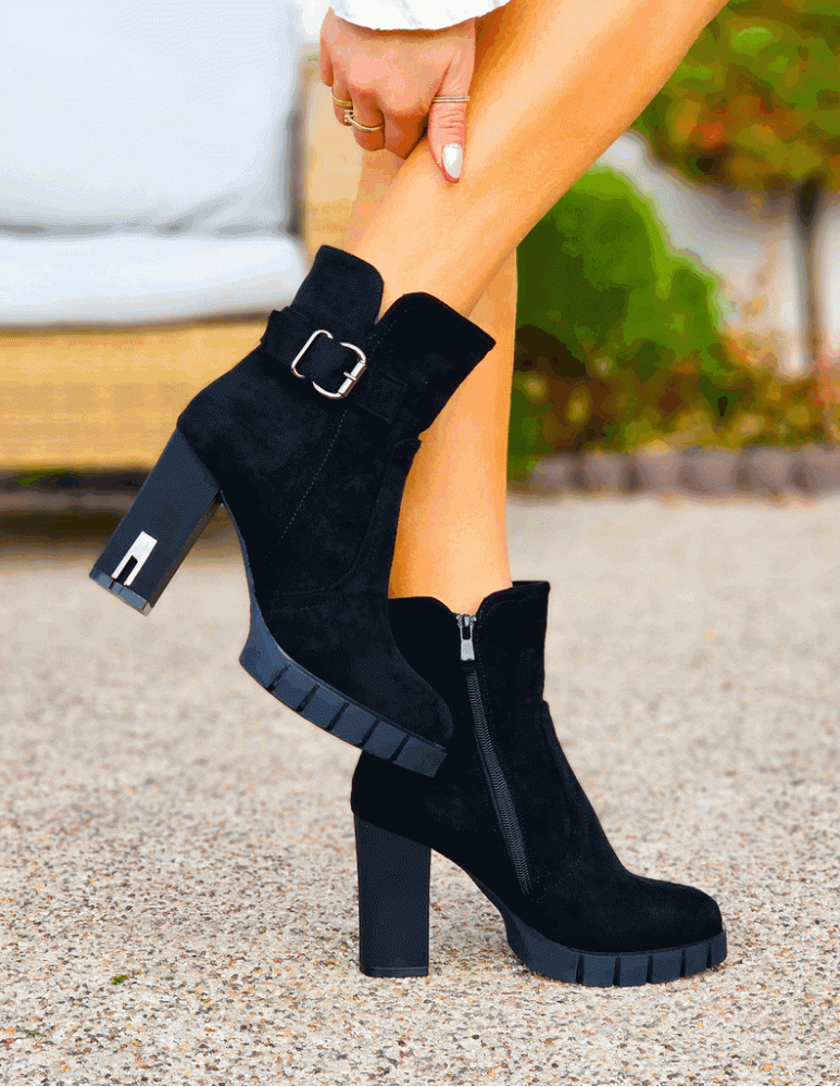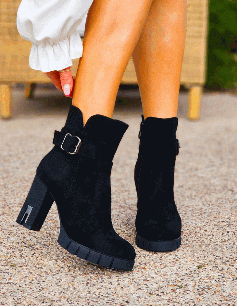 ❤ Modne i tanie buty on-line❤ Eleganckie zamszowe botki damskie❤ Czarne botki na obcasie❤ Ociep..
