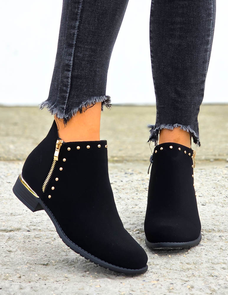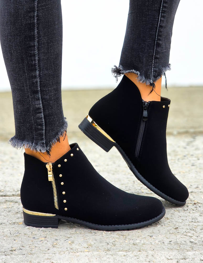 Czarne Klasyczne Zamszowe Botki Na Obcasie Fenny