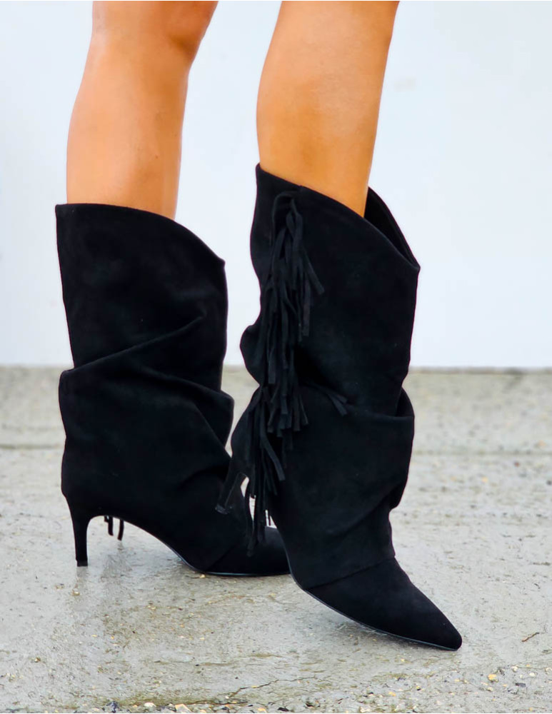 ❤Niebanalny look obuwiu nadaje marszczona cholewka oraz frędzelki