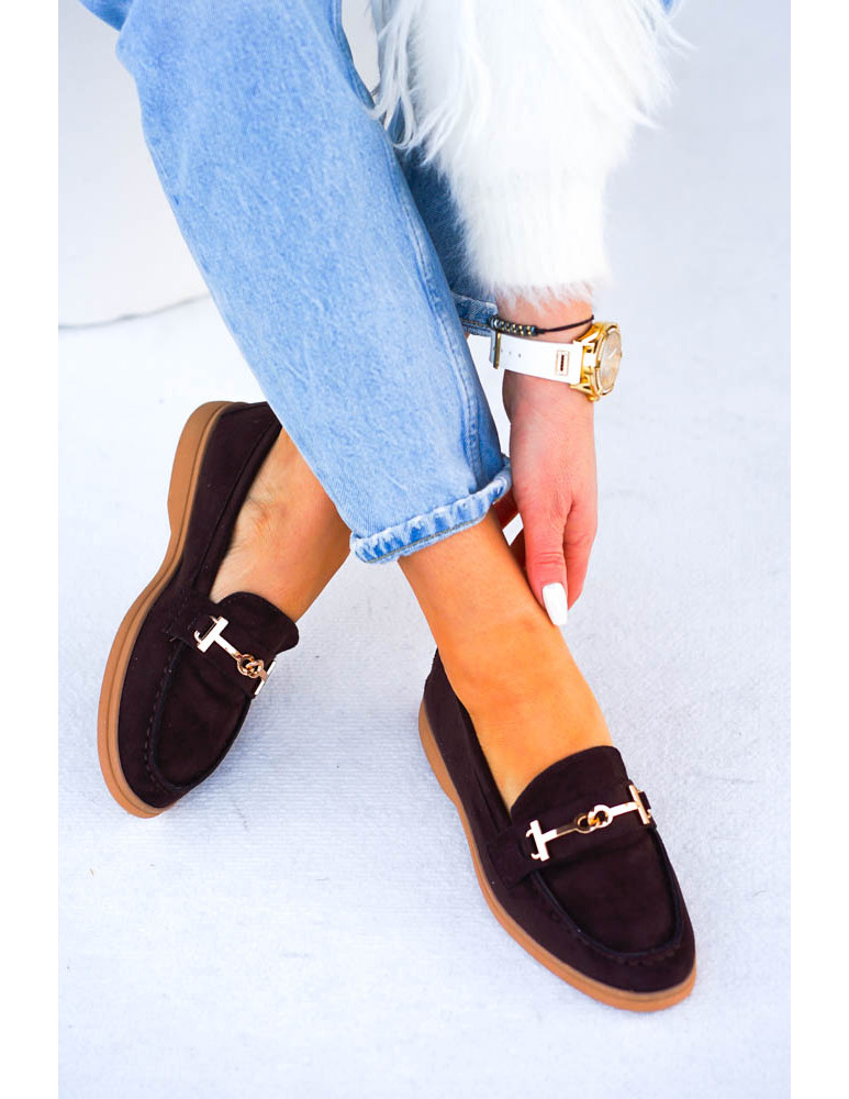 • Kod produktu: Czekoladowe Baleriny Mokasyny Ze Złotą Klamerką Calzades