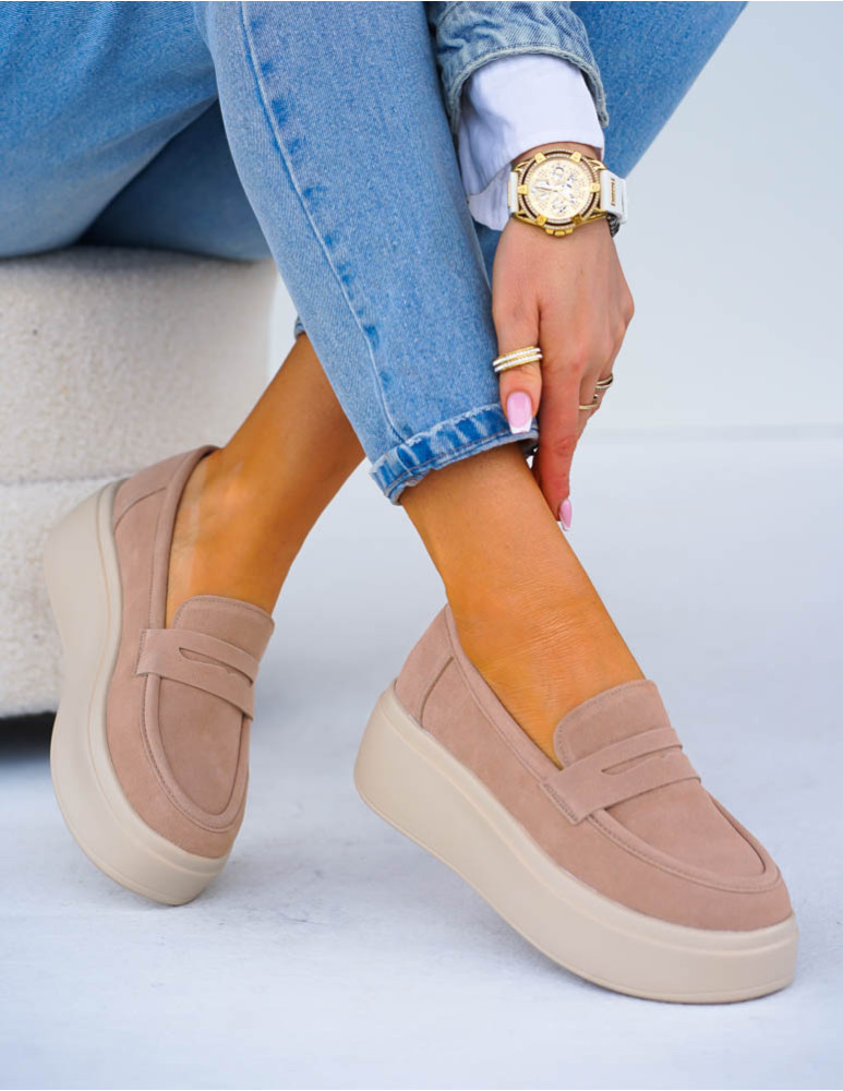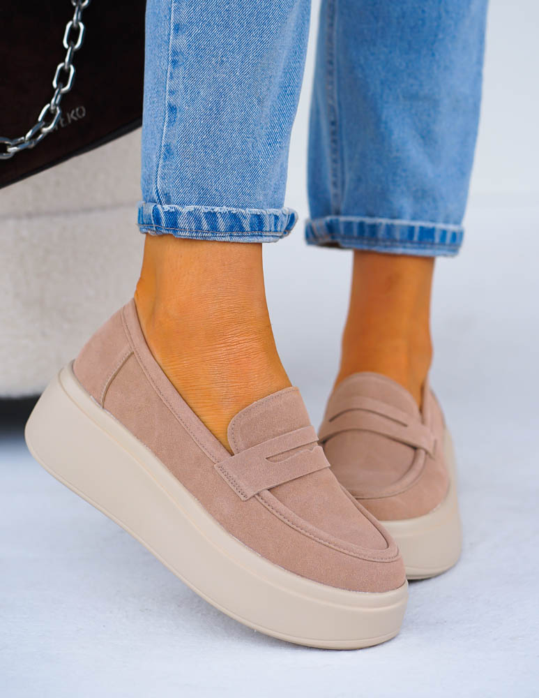 Premium Skórzane Półbuty Na Grubej Podeszwie Beżowe She