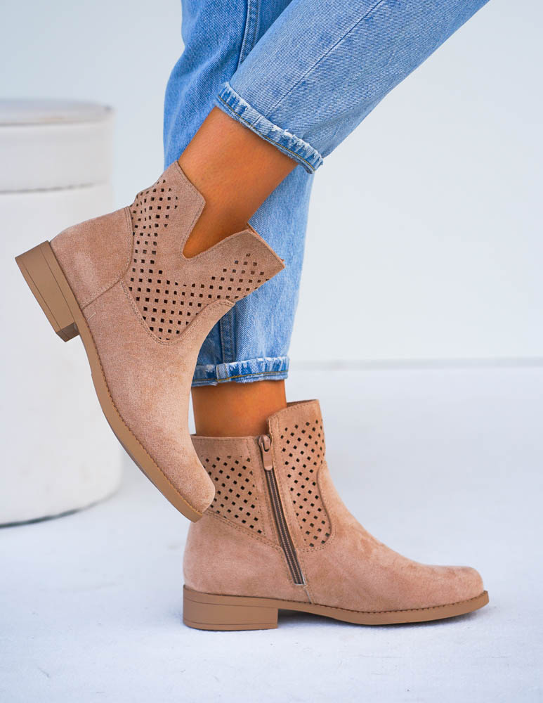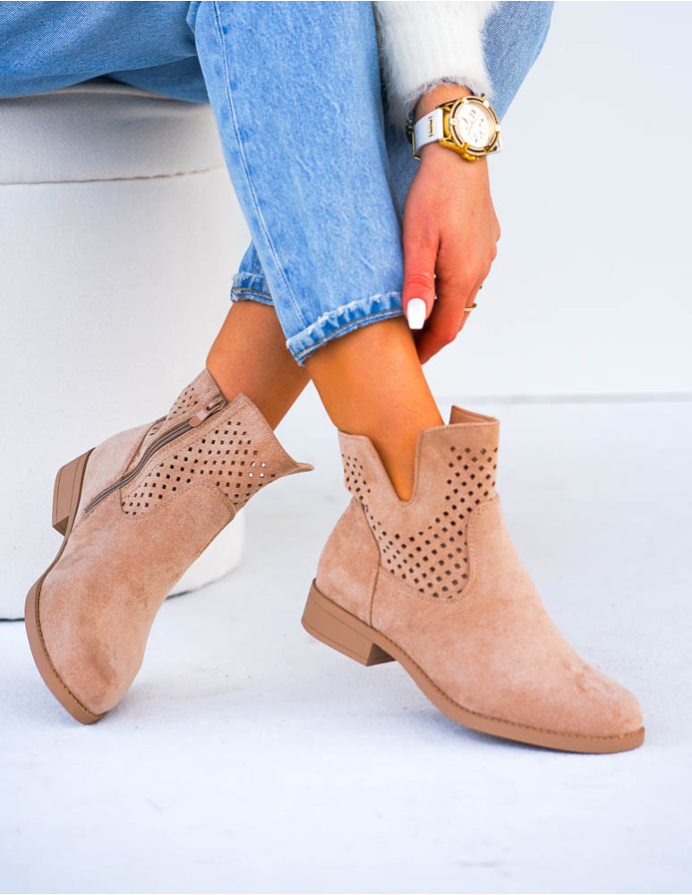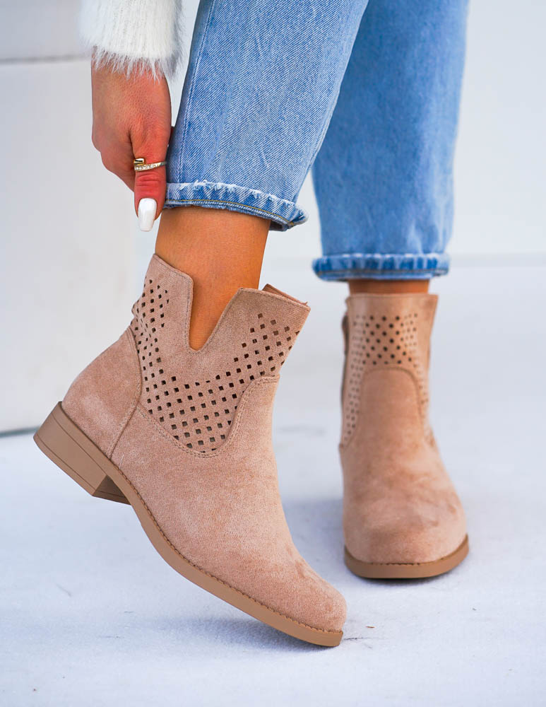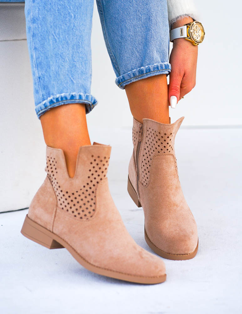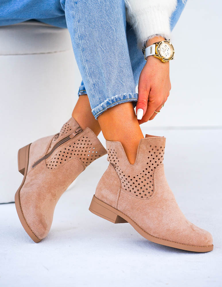 • Kod produktu: Beżowe Ażurowe Zamszowe Botki Szyblety Montenegro