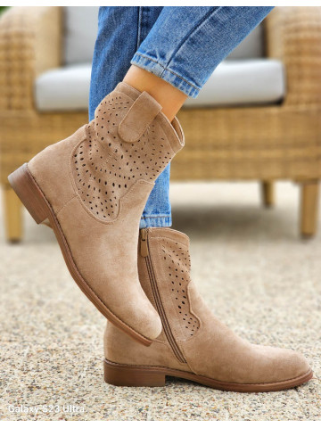 ❤ Klasyczne, zamszowe botki damskie na szerokim obcasie w ażurowy print❤Botki posiadają suwak od wew..