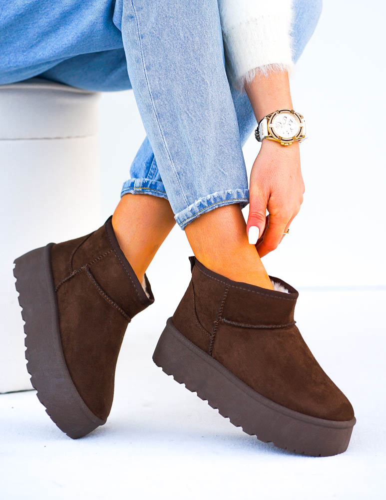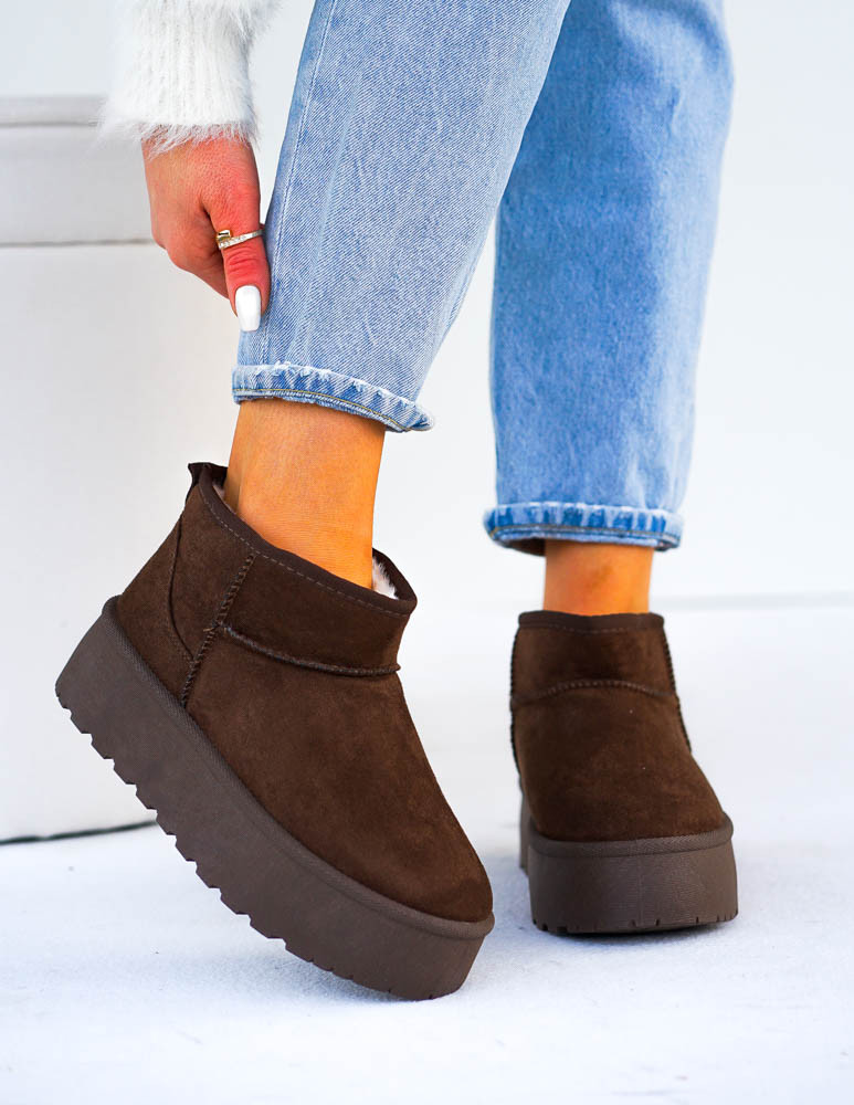 - Kod produktu: Czekoladowe Śniegowce Botki Na Platformie Ocieplane Saszki