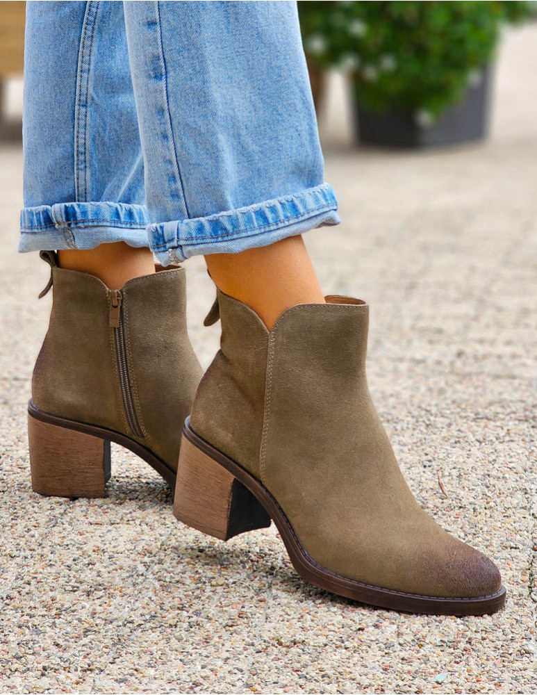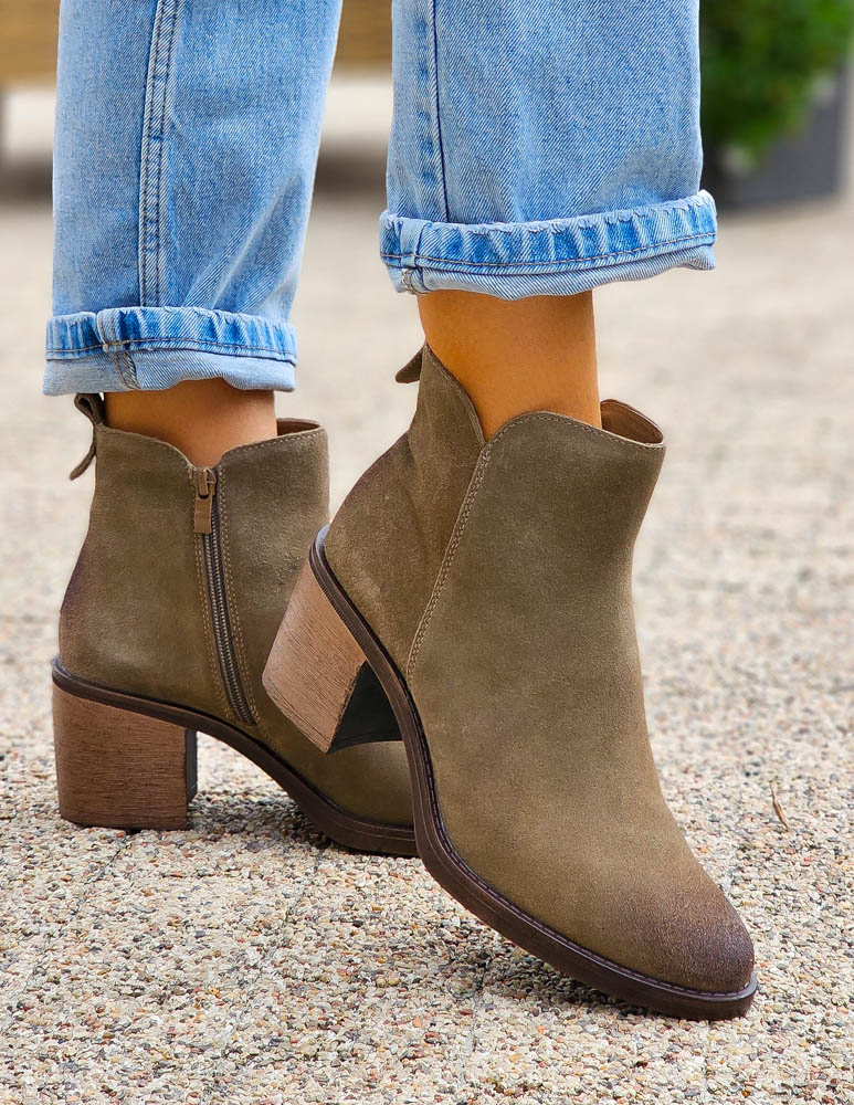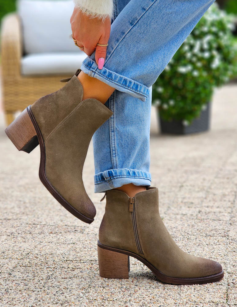 Beżowe Klasyczne Zamszowe Botki Na Obcasie Daisy