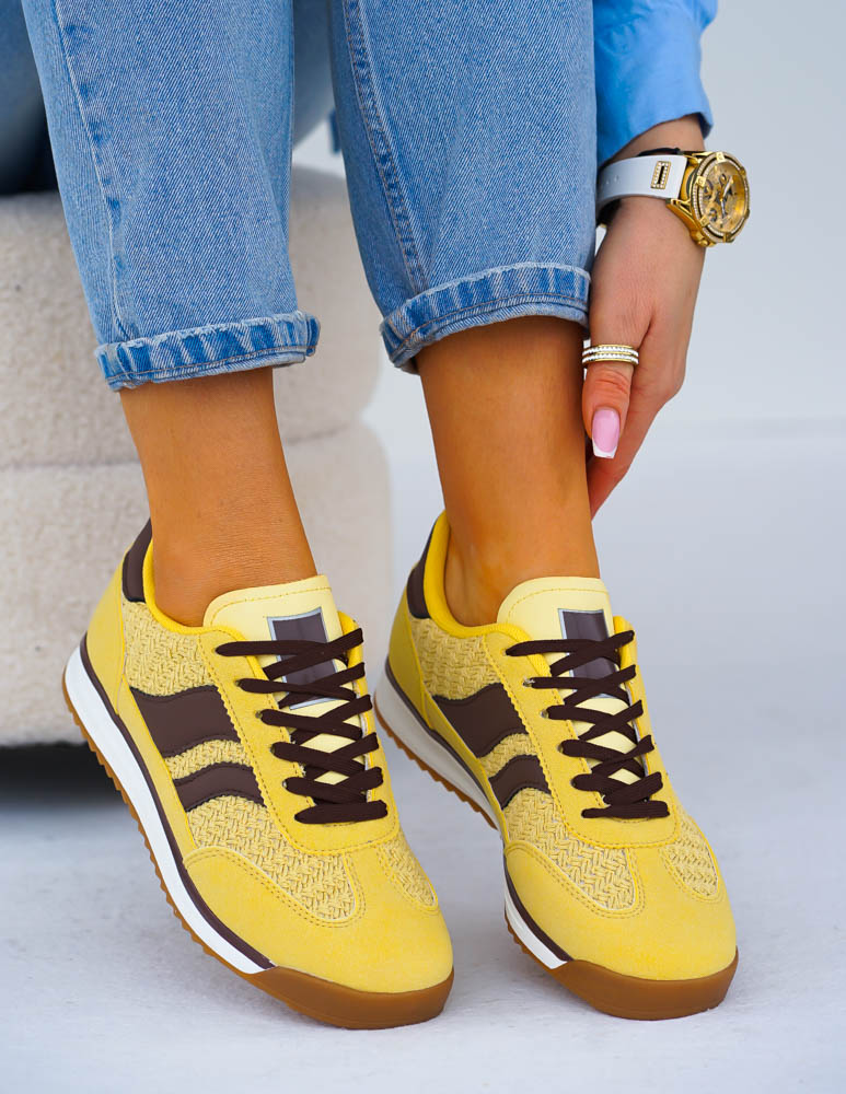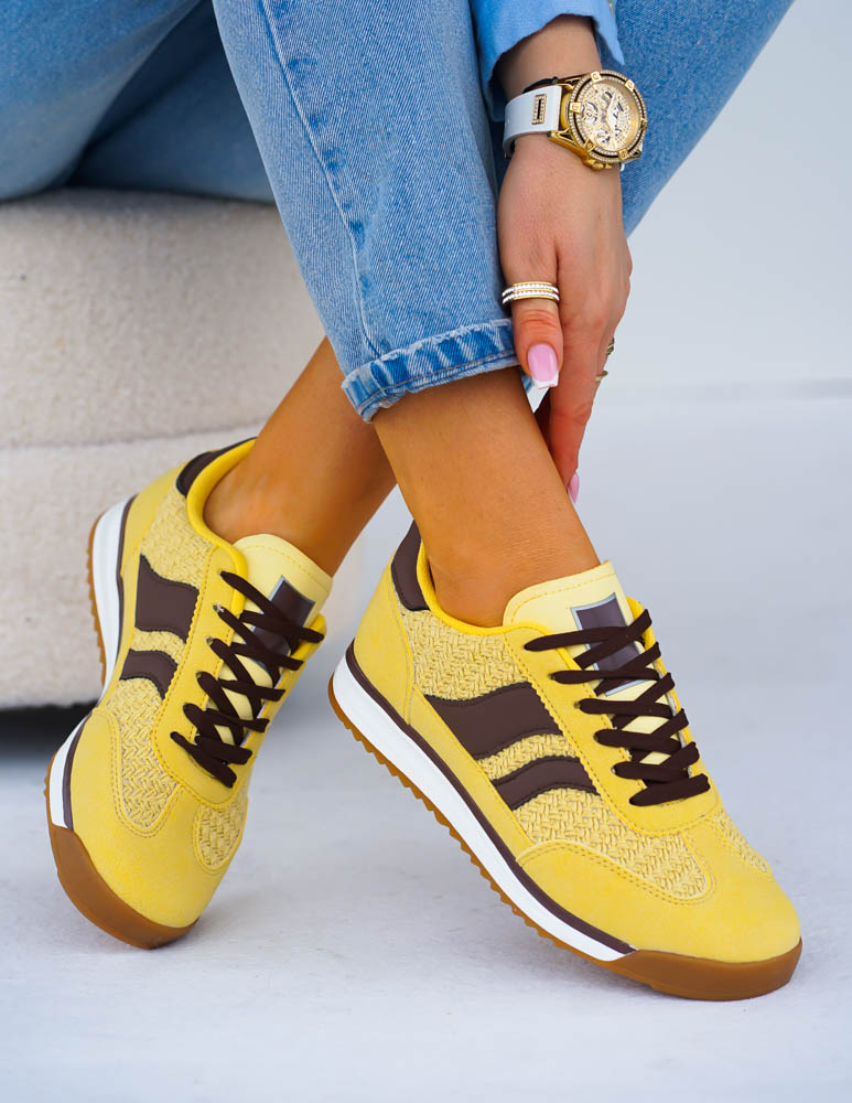 Żółto-Czekoladowe Buty Sportowe Damskie News